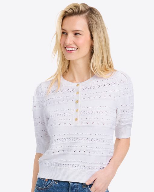 Draper James Women’s Annabelle Short-sleeve Sweater In White Pointelle | Magnolia White