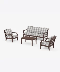 Draper James Women’s Savannah 4-piece Deep Seating Set With Sofa In Buffalo Plaid | Mahogany