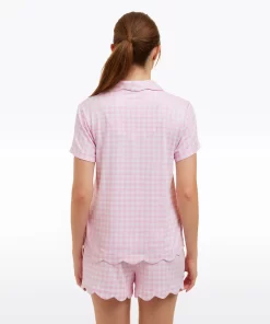 Draper James Women’s Scallop Sara Pajama Set In Pink Gingham | Pink Gingham