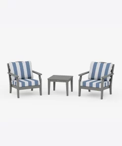 Draper James Women’s Home & Gifting Savannah 3-piece Deep Seating Set In Cabana Stripe | Slate Grey
