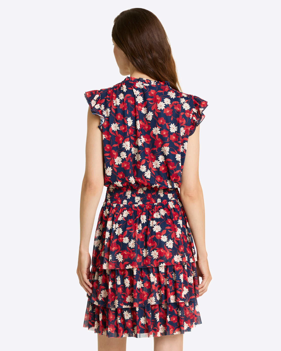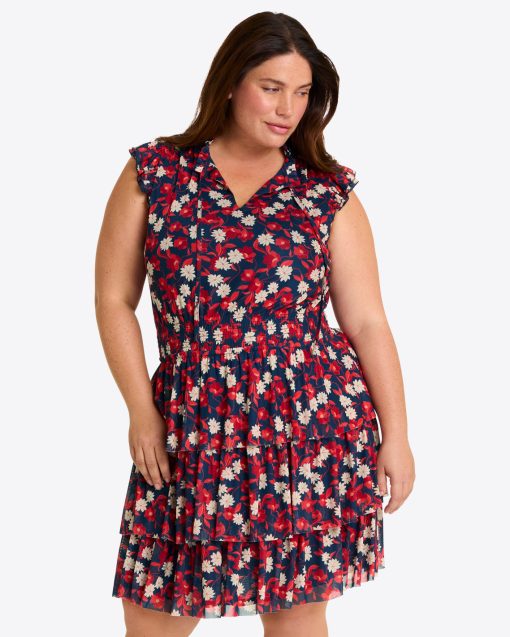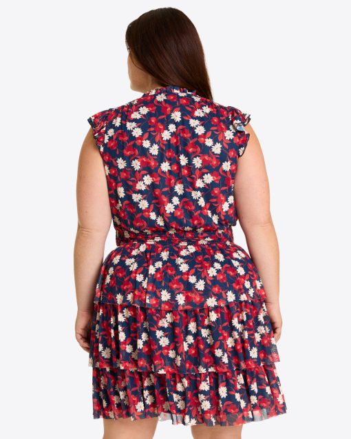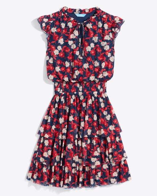 Draper James Women’s Alana Tiered Dress In Stretch Mesh | Nassau Navy Multi Blossom