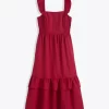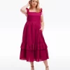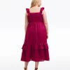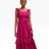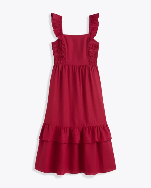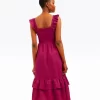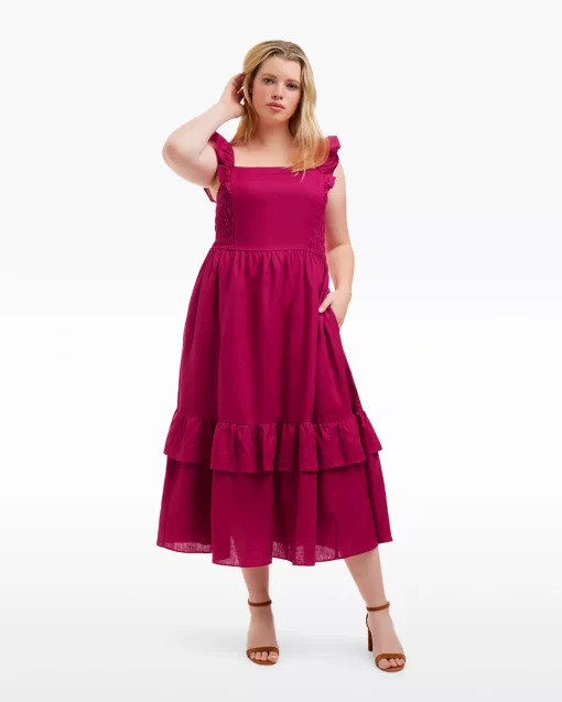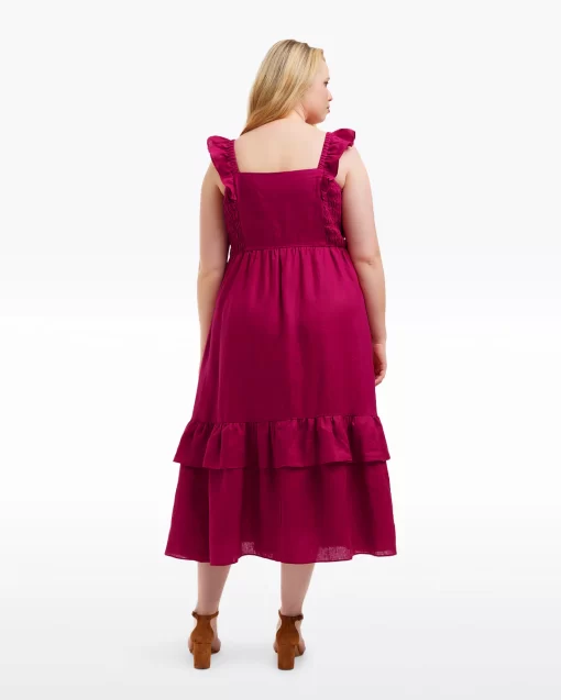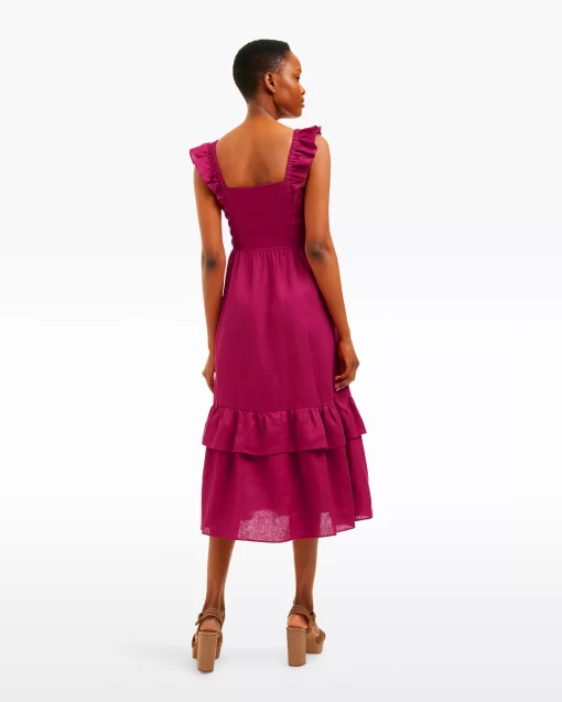 Give it a twirl. Our Carrie Midi Dress in Raspberry Pink is made from 100% linen and finished with a smocked bodice, a square neckline and ruffles at the shoulders. The length makes it a perfect match for your favorite high-heeled sandals, but you could wear it with slip-on sneakers, too, for a more casual look.