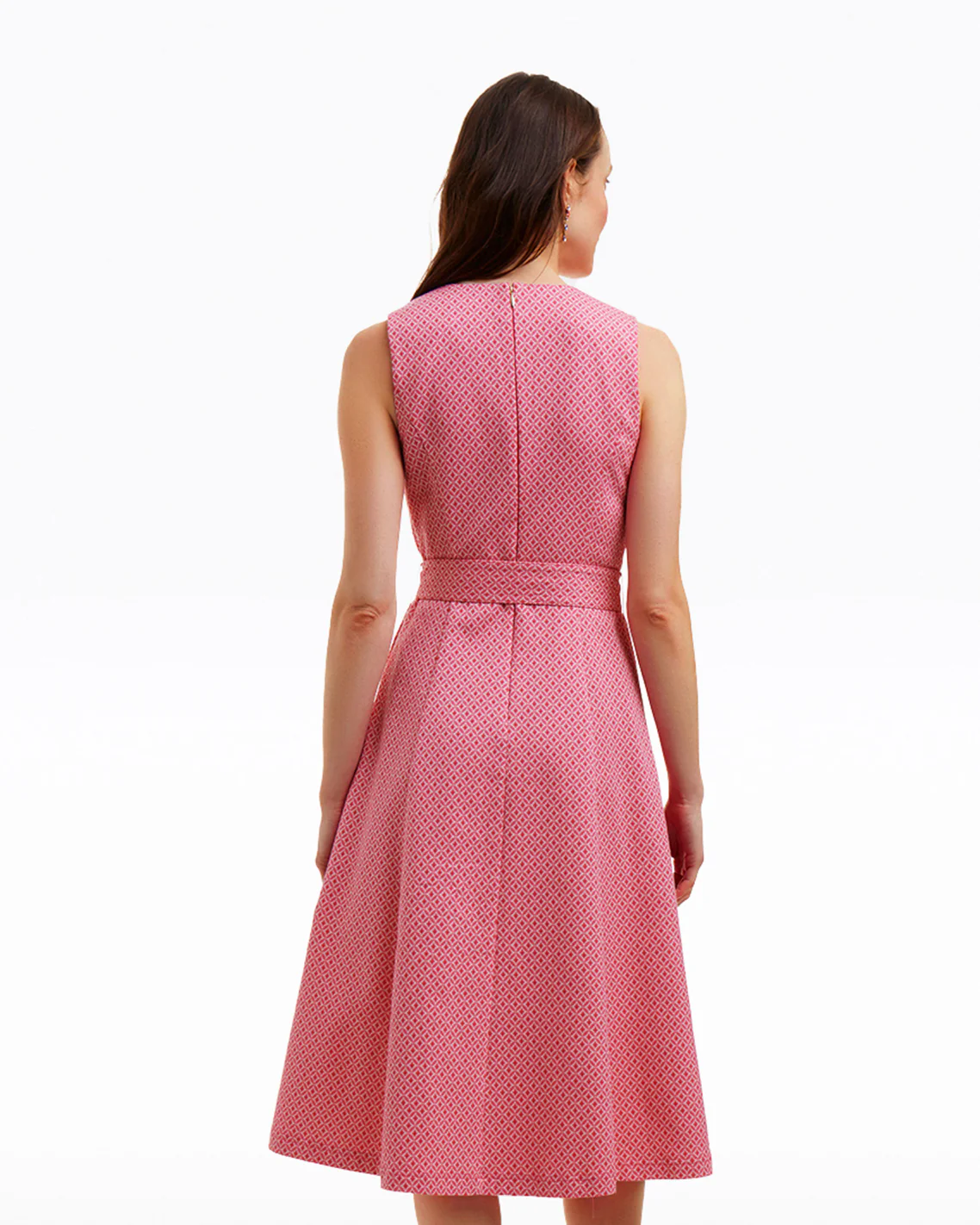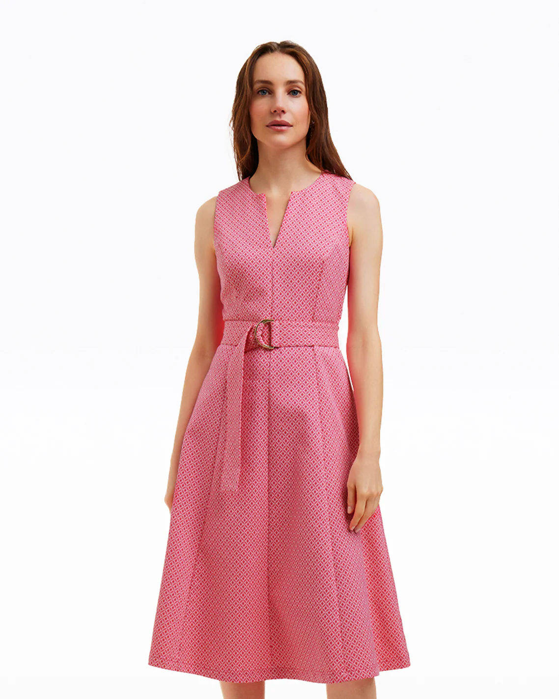 Think pink. Our Charlotte Midi Dress in Circle Geo is made from a substantial stretch-cotton knit and finished with flattering details like a belt and a V-shaped neckline. Wear it with heels to work, dinner or whatever else you’ve got planned.