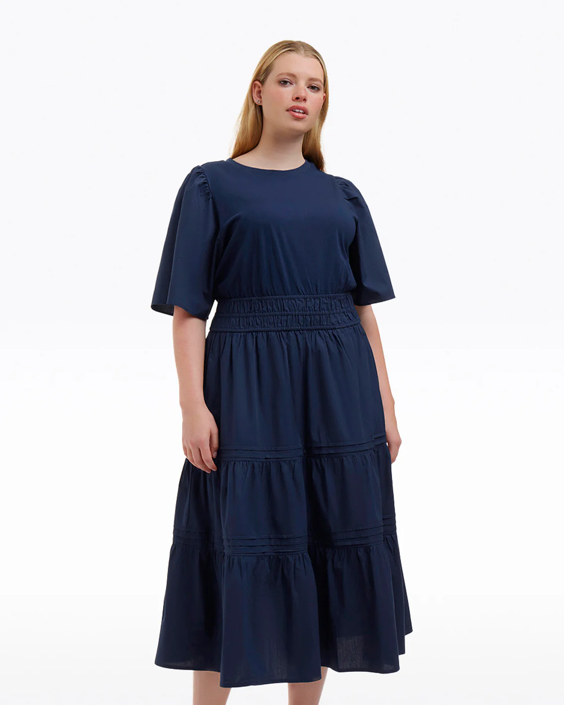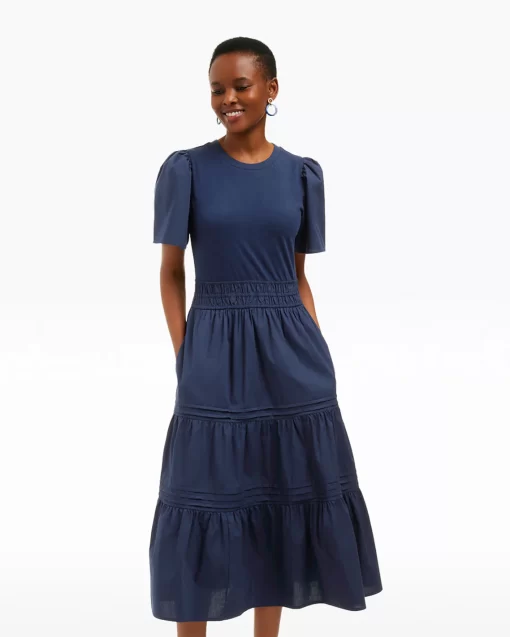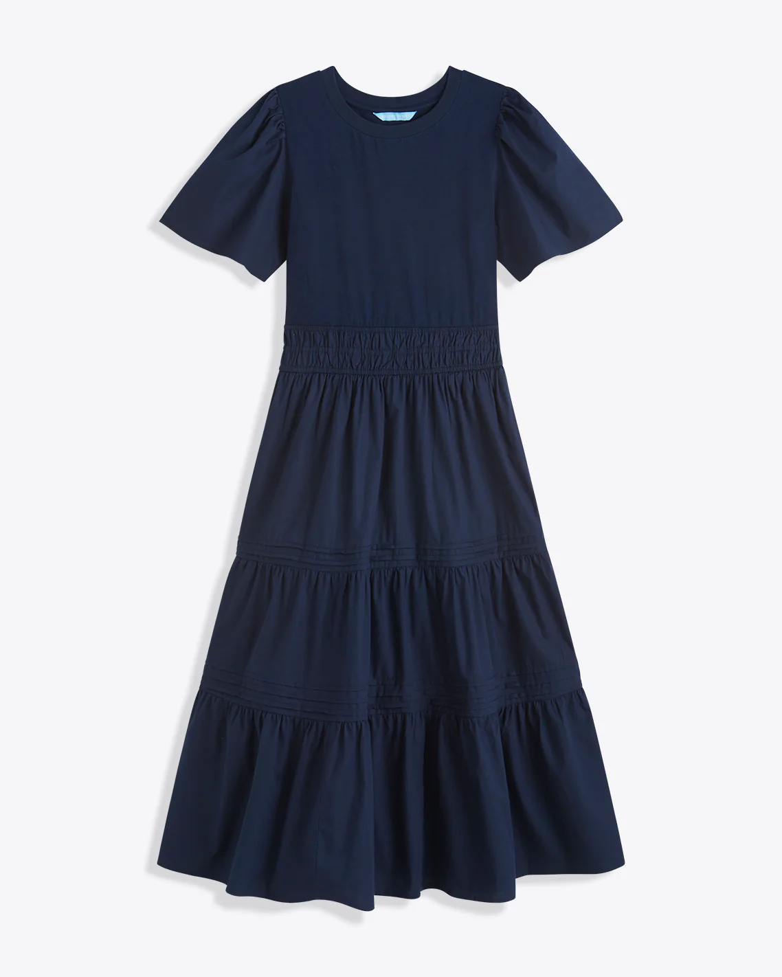 Mix it up. Our Cleo Mixed Media Dress in Navy is made from 100% cotton jersey and poplin for a look that’s both easy and polished. Wear it with anything from high heels to slip-on sneakers, for an instant, go-anywhere outfit.