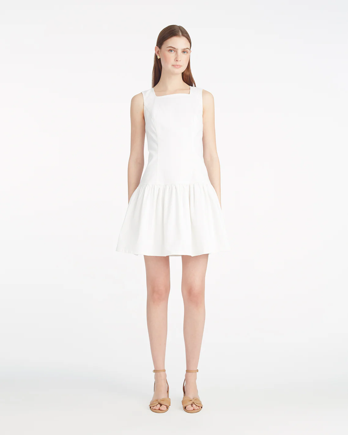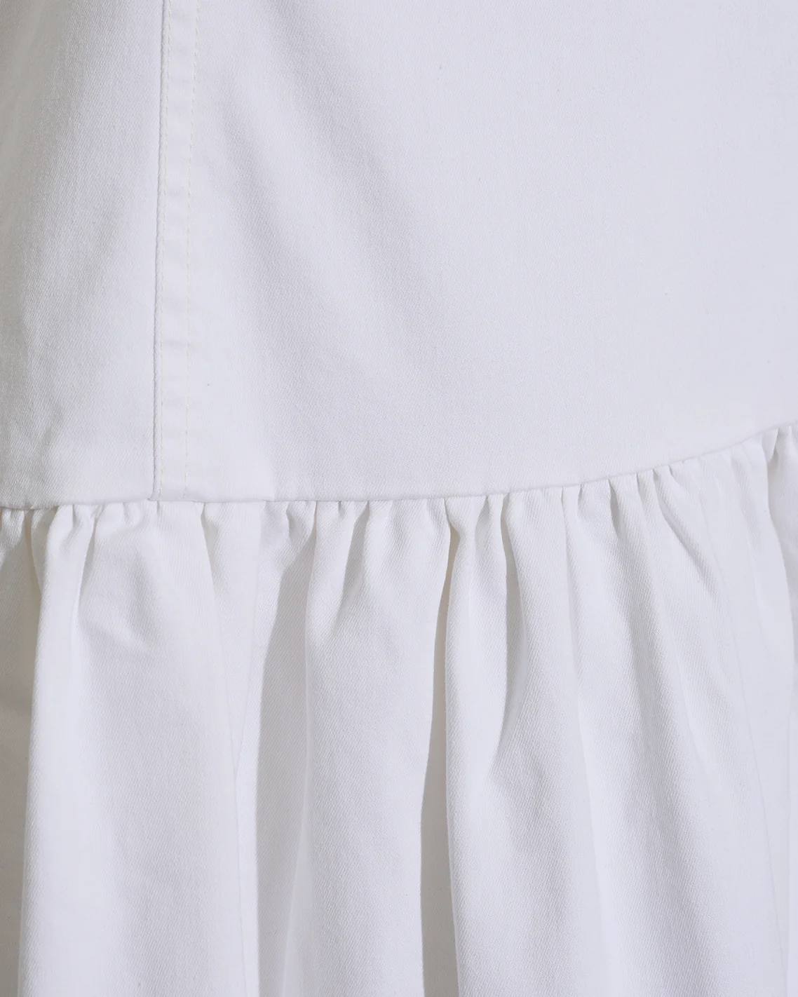 Flounce around. Our Colette Tailored Flounce Dress in Denim is cut from a white denim with the perfect amount of stretch sewn into a ladylike shape. Wear it for work, the weekend or whatever else you have planned, with heels, flip-flops or slip-on sneakers.