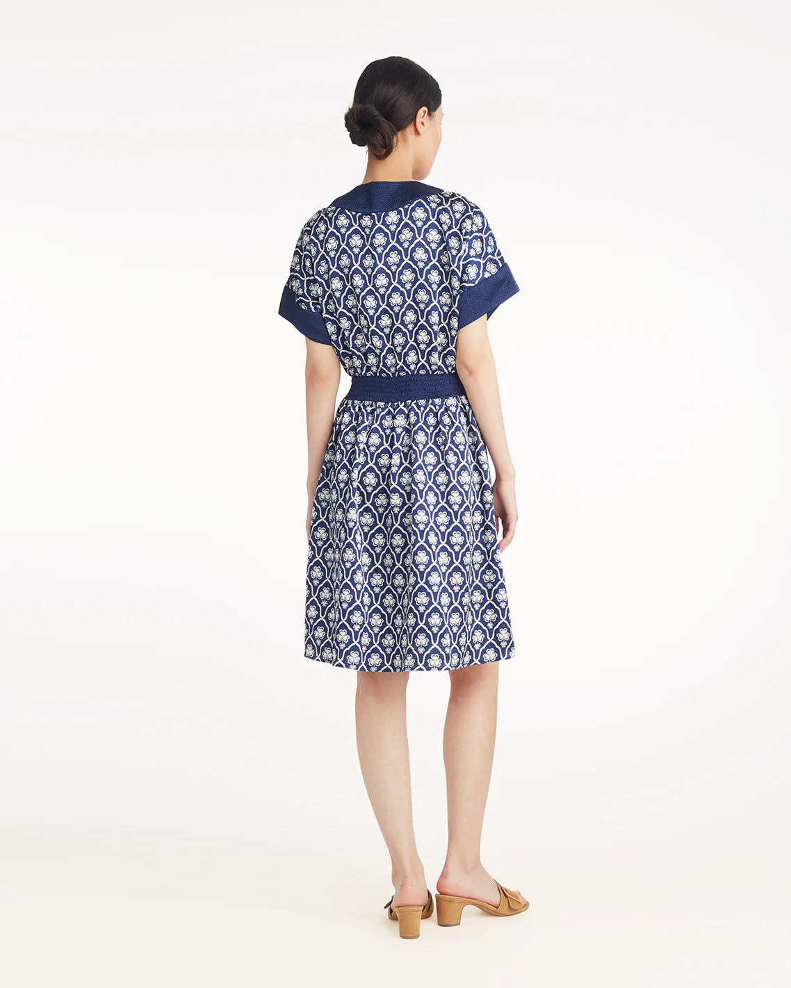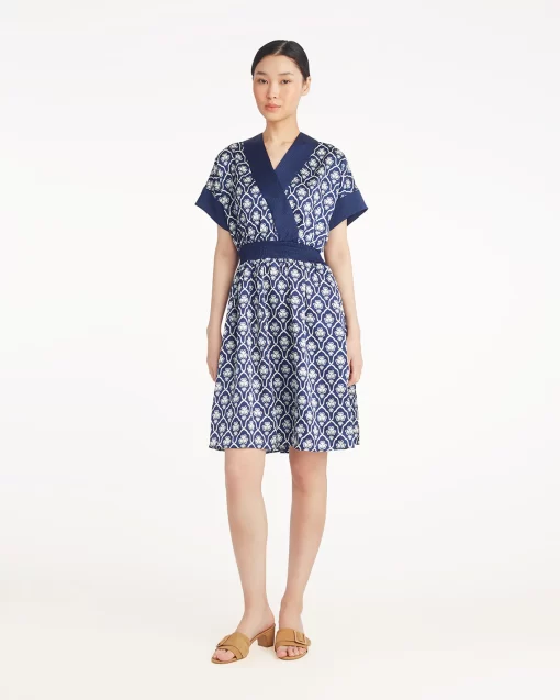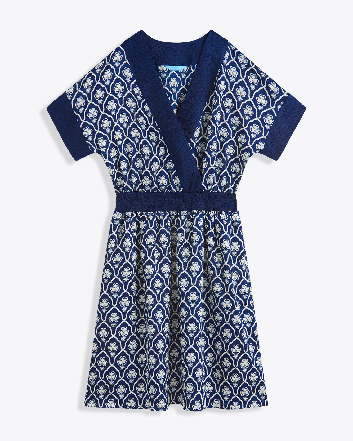 Wrap it up. Our Colleen Short Sleeve Wrap Dress in Clover Field is cut from printed hammered satin and finished with contrasting trim and a self-tie belt. Wear it with heels to work, weekend brunches and whatever else you have planned.