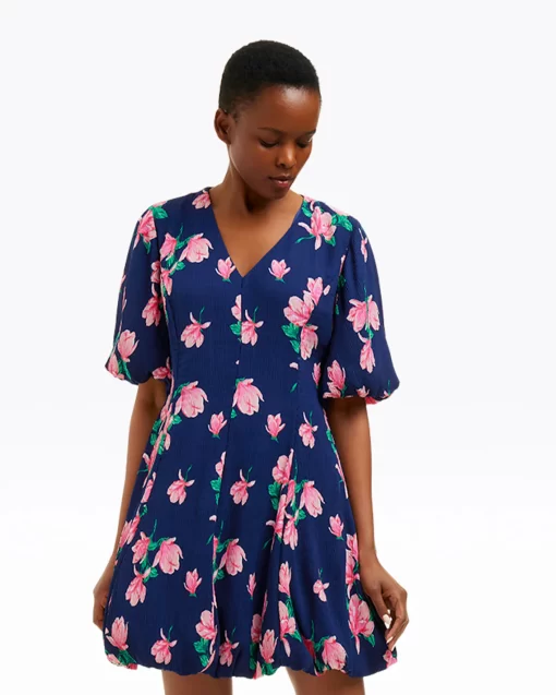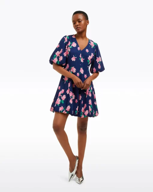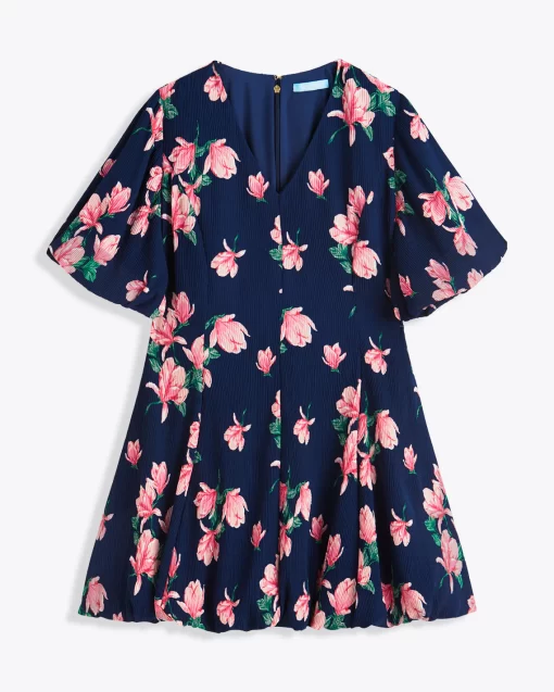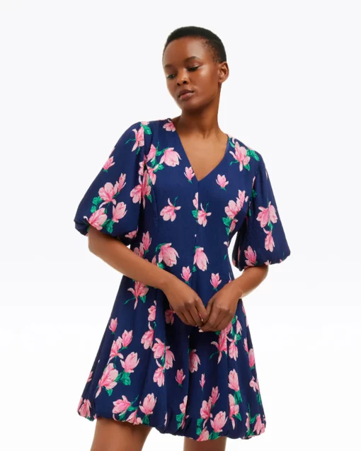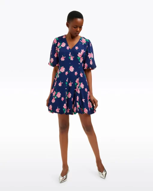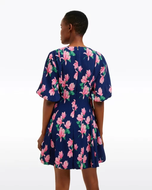 You’re blossoming. Or rather, you will be when you wear our Elaine V-Neck Mini Dress in Magnolia Buds. Constructed from a light crinkle chiffon printed with magnolias and finished with bubble sleeves, this is a perfect dress for spring parties, weddings and whatever else you might have planned.