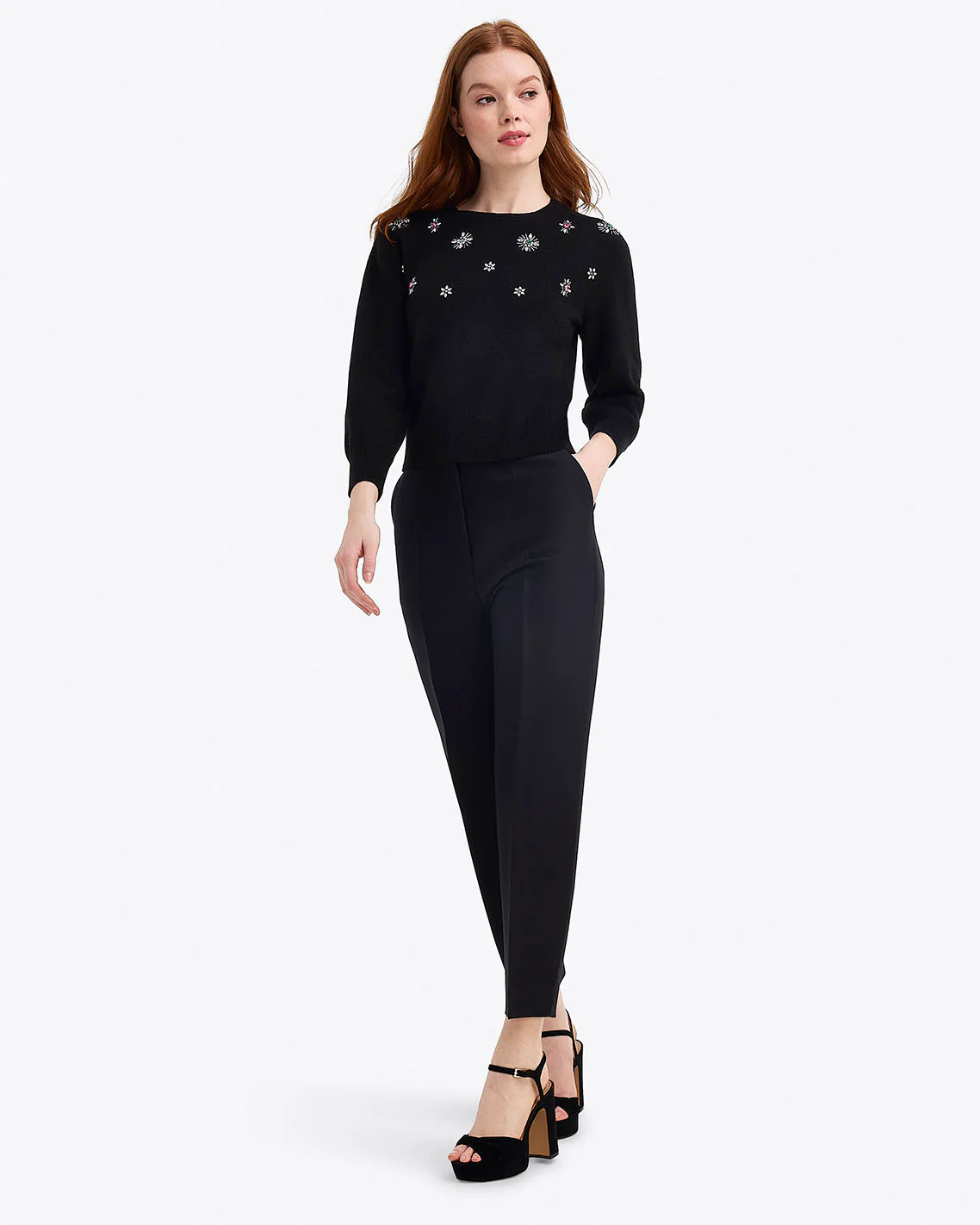 Sparkle plenty. Our Embellished Crewneck Sweater is knit from a cozy blend with the ideal amount of stretch and decorated with colorful gems, for a festive look that’s perfect for the holidays. Pair it with your favorite black pants or jeans and you’re ready to party!