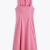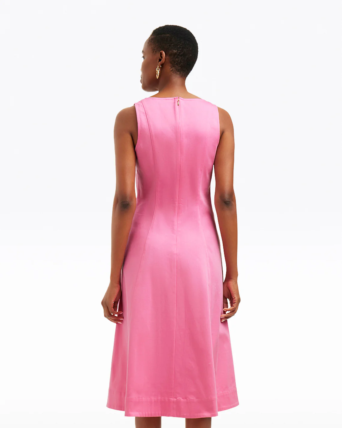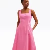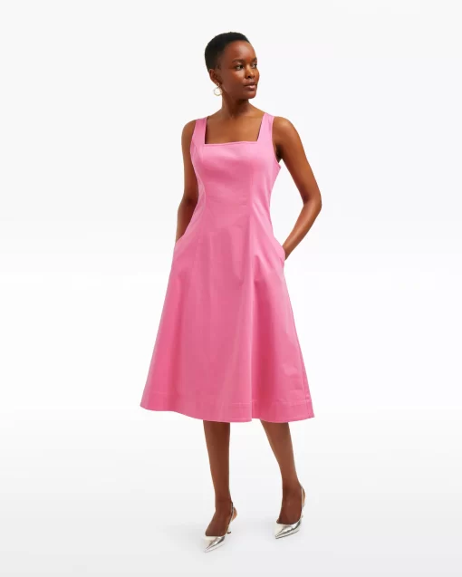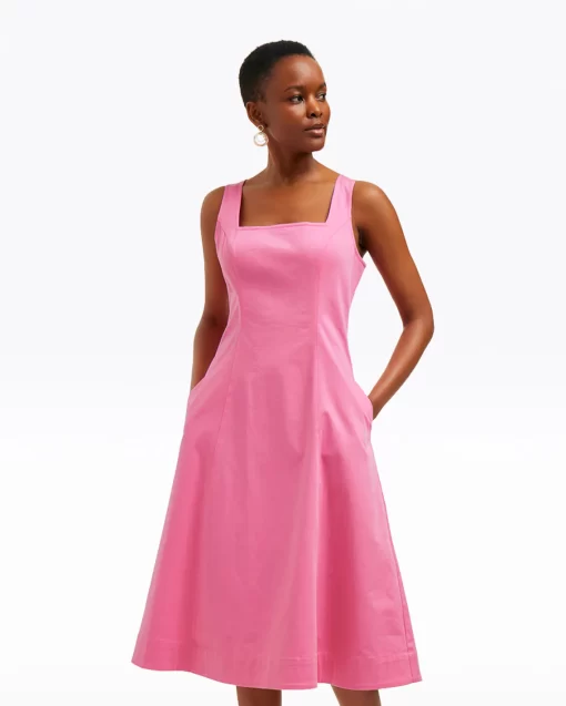 Think pink. Our Genevieve Square Neck Sleeveless Midi Dress boasts a classic silhouette made from a structured stretch cotton in a bright color, so it feels ultra-wearable without being the least bit boring.