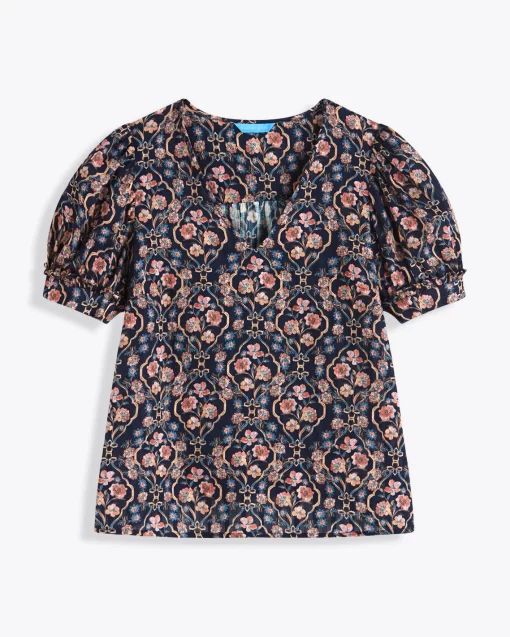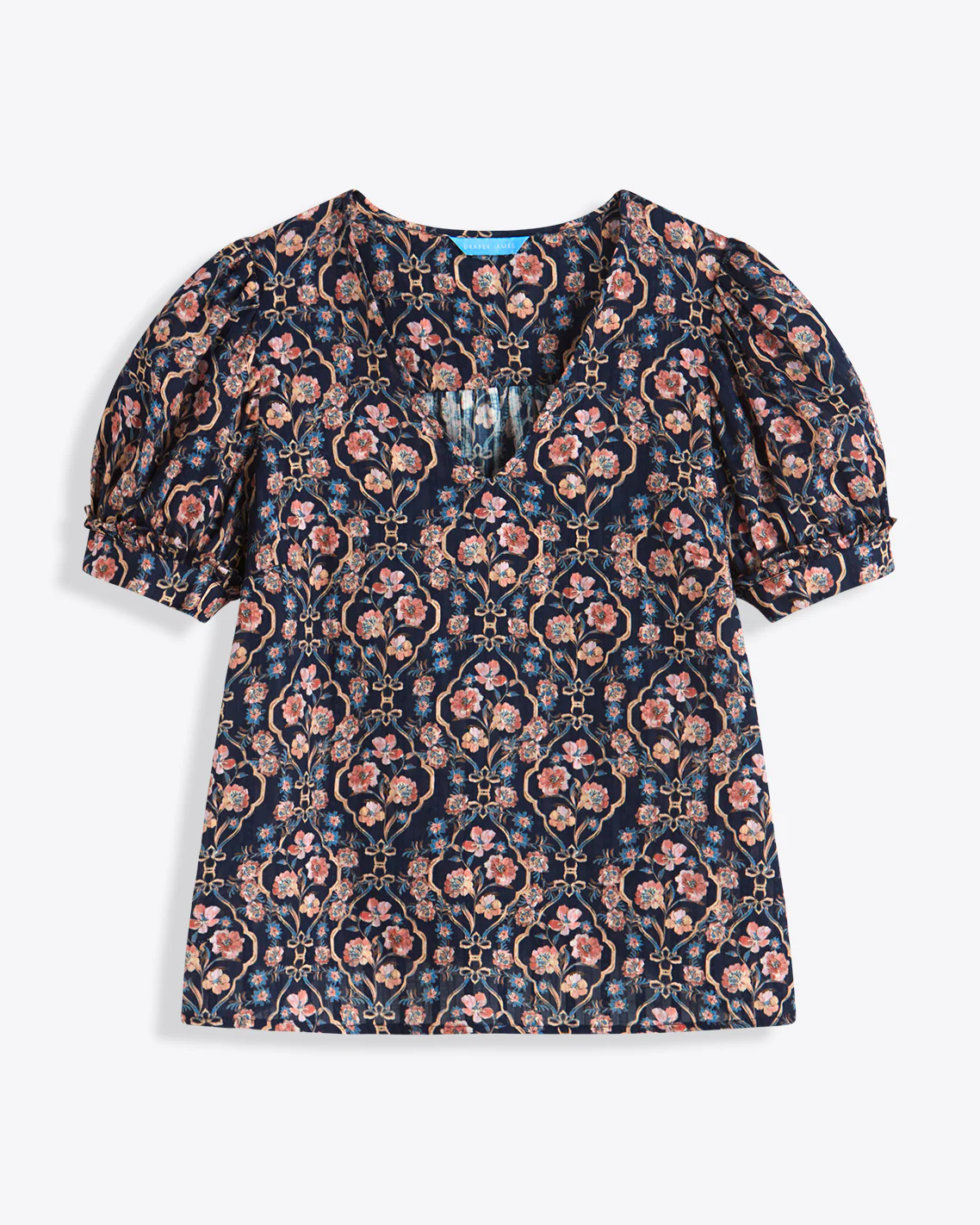 Draper James Women’s Heidi V-neck Top In Twilight Vines | Twilight Vines