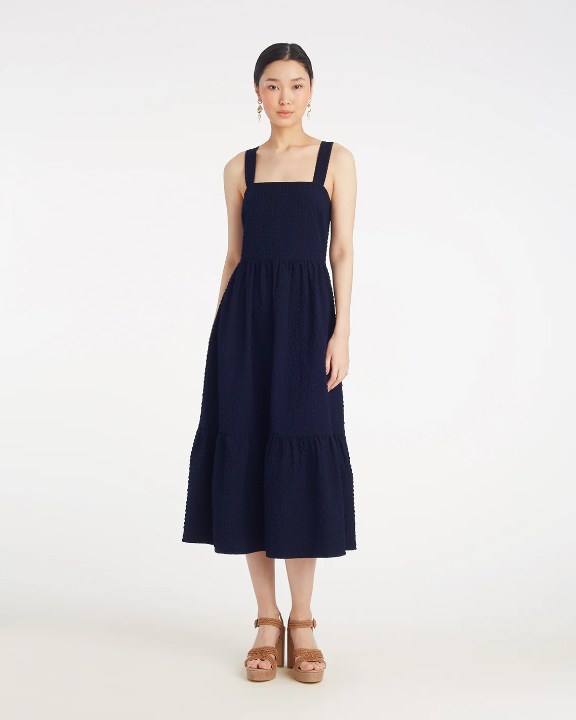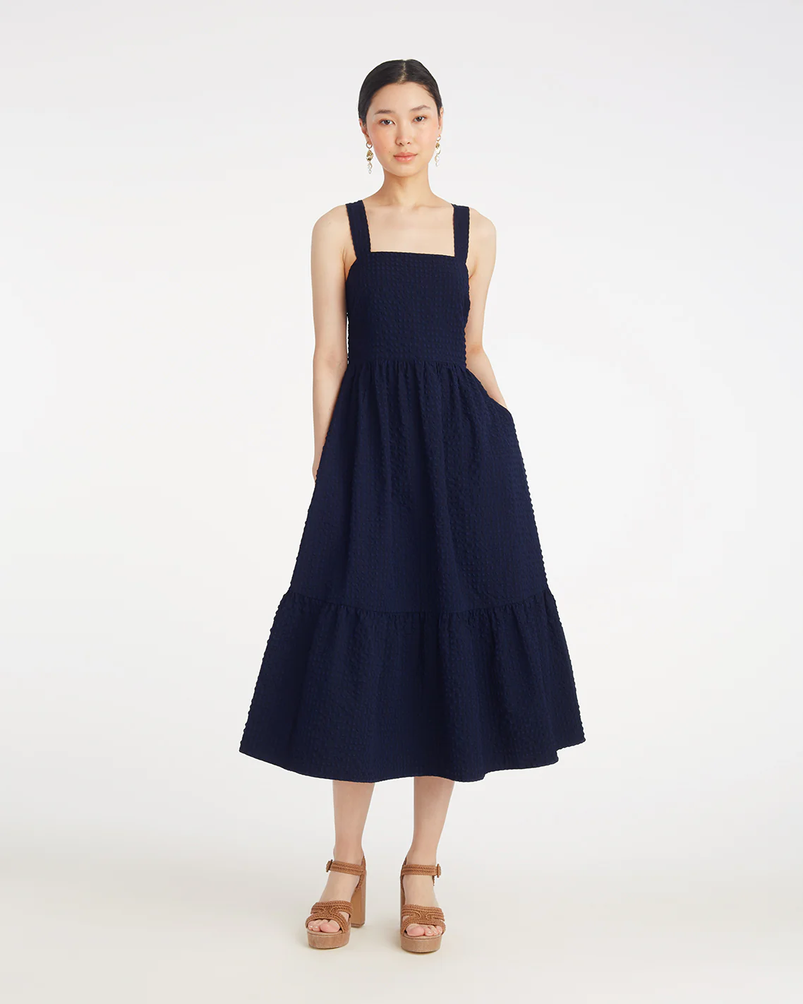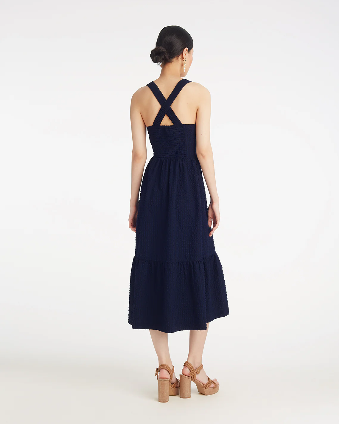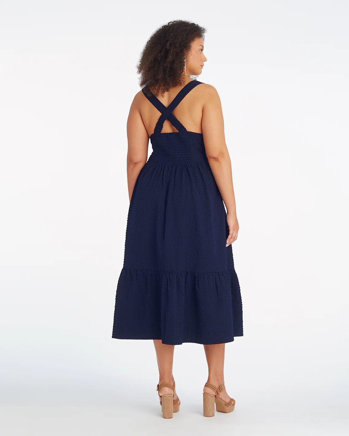 Keep it simple. Our Blake Midi Dress in Seersucker boasts a streamlined silhouette, finished with criss-cross straps and a smock-backed bodice. The result? Only a perfect, wear-everywhere summer sundress that will fit like a dream and look even better.