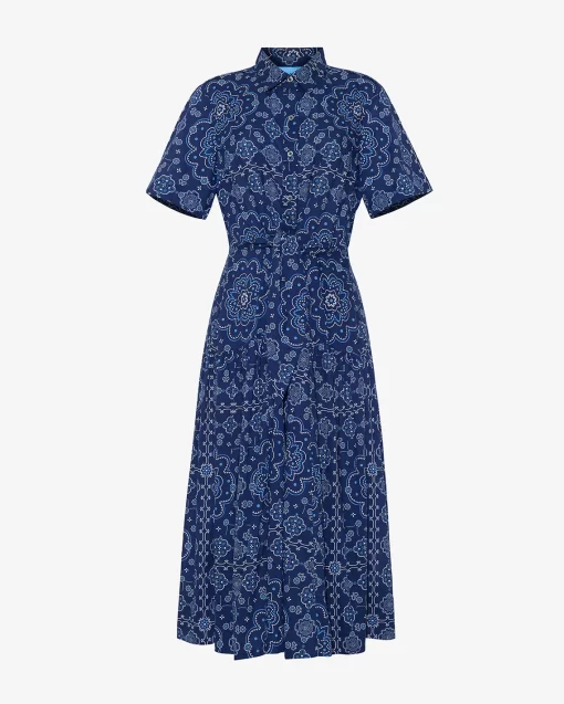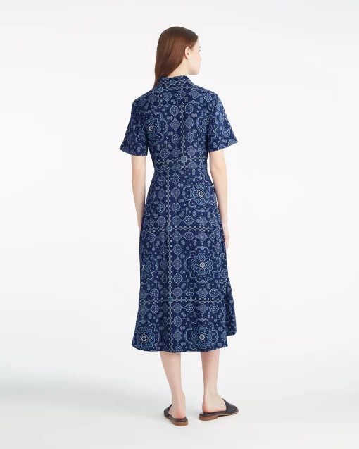 Button things up. Cut from a printed 100% cotton, our Riley Midi Shirtdress in Bandana Blue is a perfect, polished option for whatever you’re up to this summer. Dress it down with a pair of white sneakers, or try high-heeled sandals for a more elevated look.