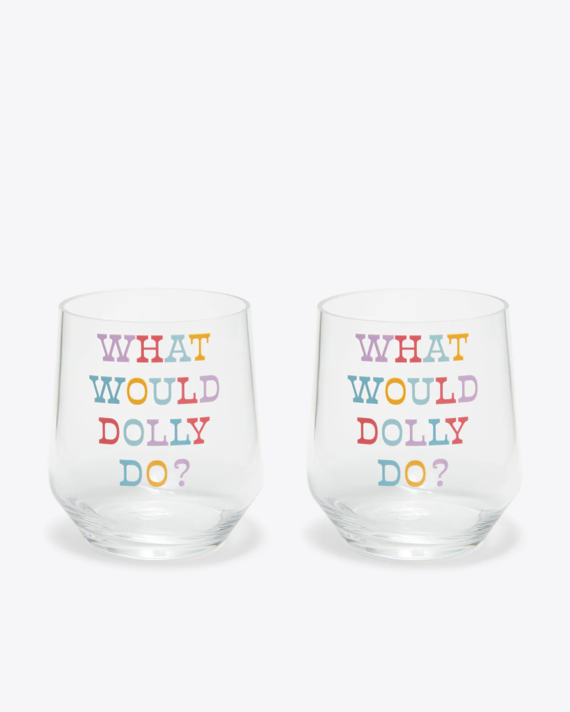 Words to live by. This set of two acrylic wine glasses is perfect for backyard toasts, and at fifteen ounces a piece, they also permit some generous pours. We think Dolly would approve.