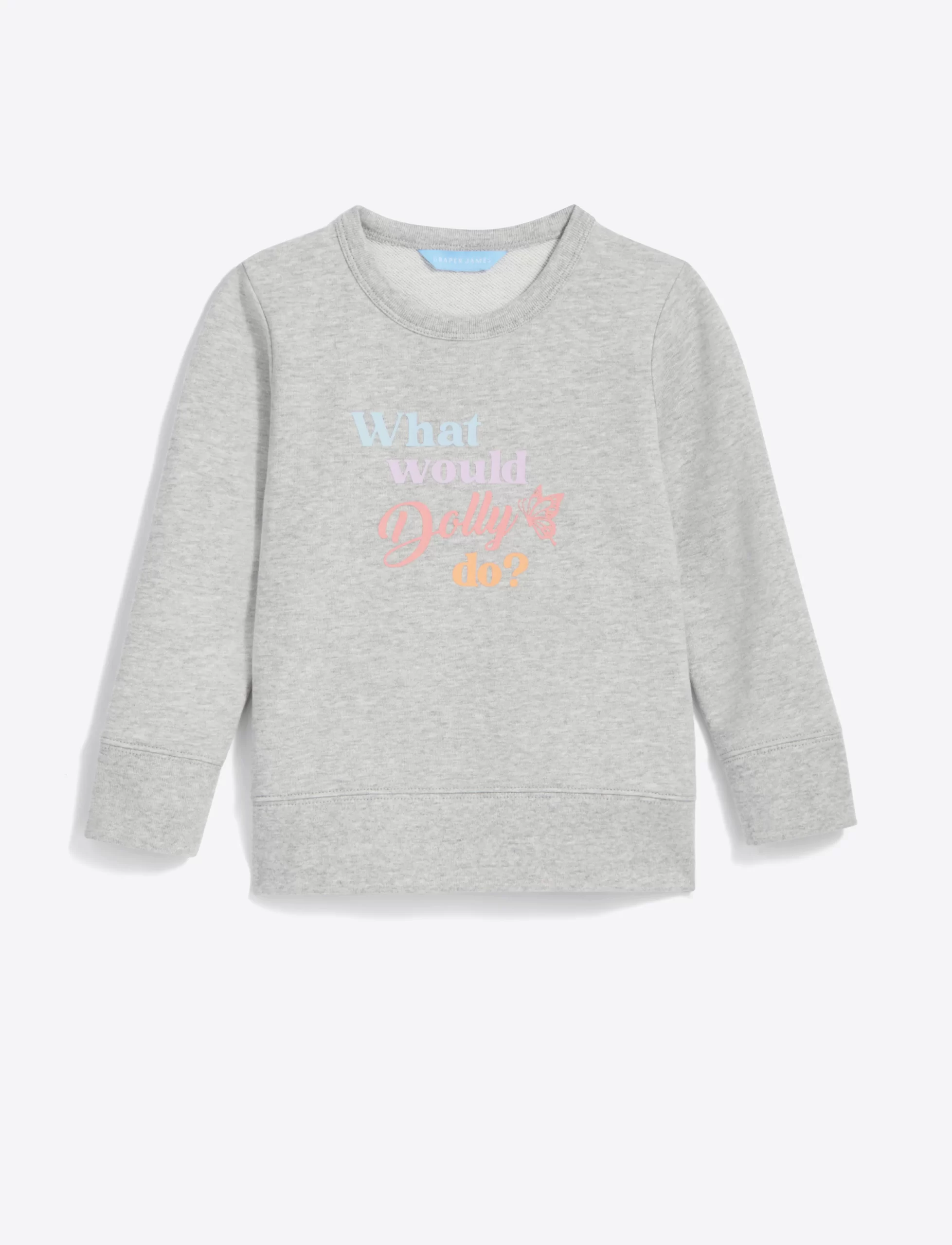 Hello, Dolly. In honor of the legend’s birthday, we’ve created a new 100% cotton sweatshirt decorated with a witty graphic that’ll remind your child — and everyone who sees them — to face challenging situations by asking, “What would Dolly do?” Bonus: It goes great with jeans!