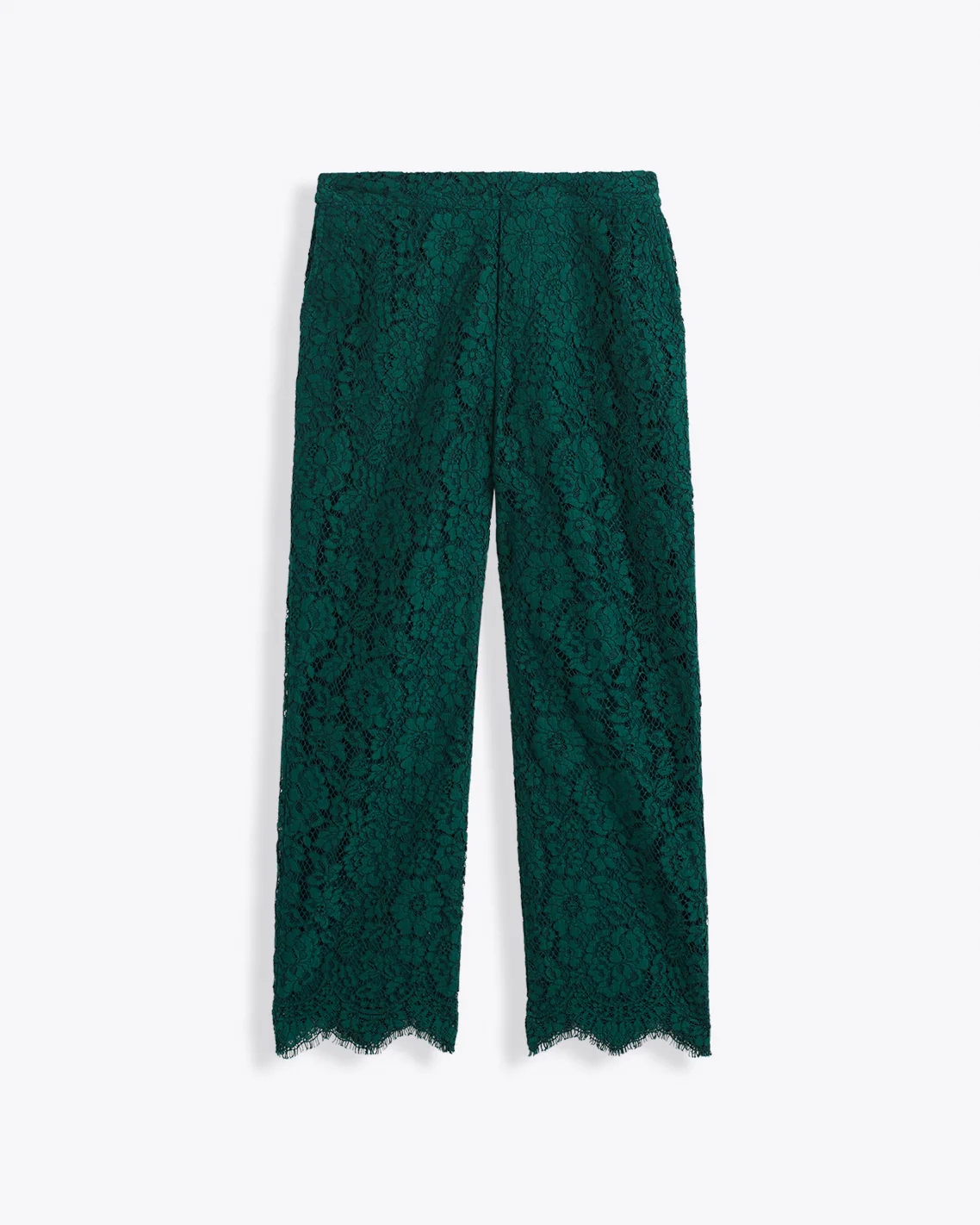 Go green. Our Lace Pants are perfect for holiday parties, dinners or whatever else you have planned. Wear them with a silky button-down — or our matching Claire top — to holiday parties, dinners or whatever else you have planned. (The cropped silhouette looks amazing with heels and flats.)