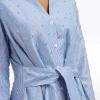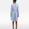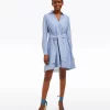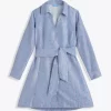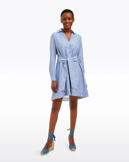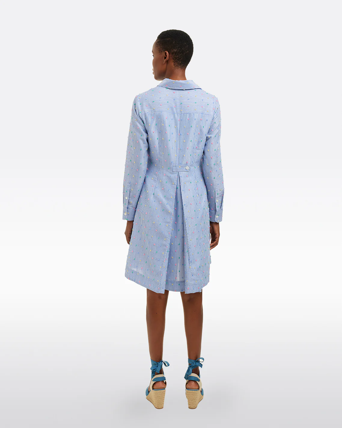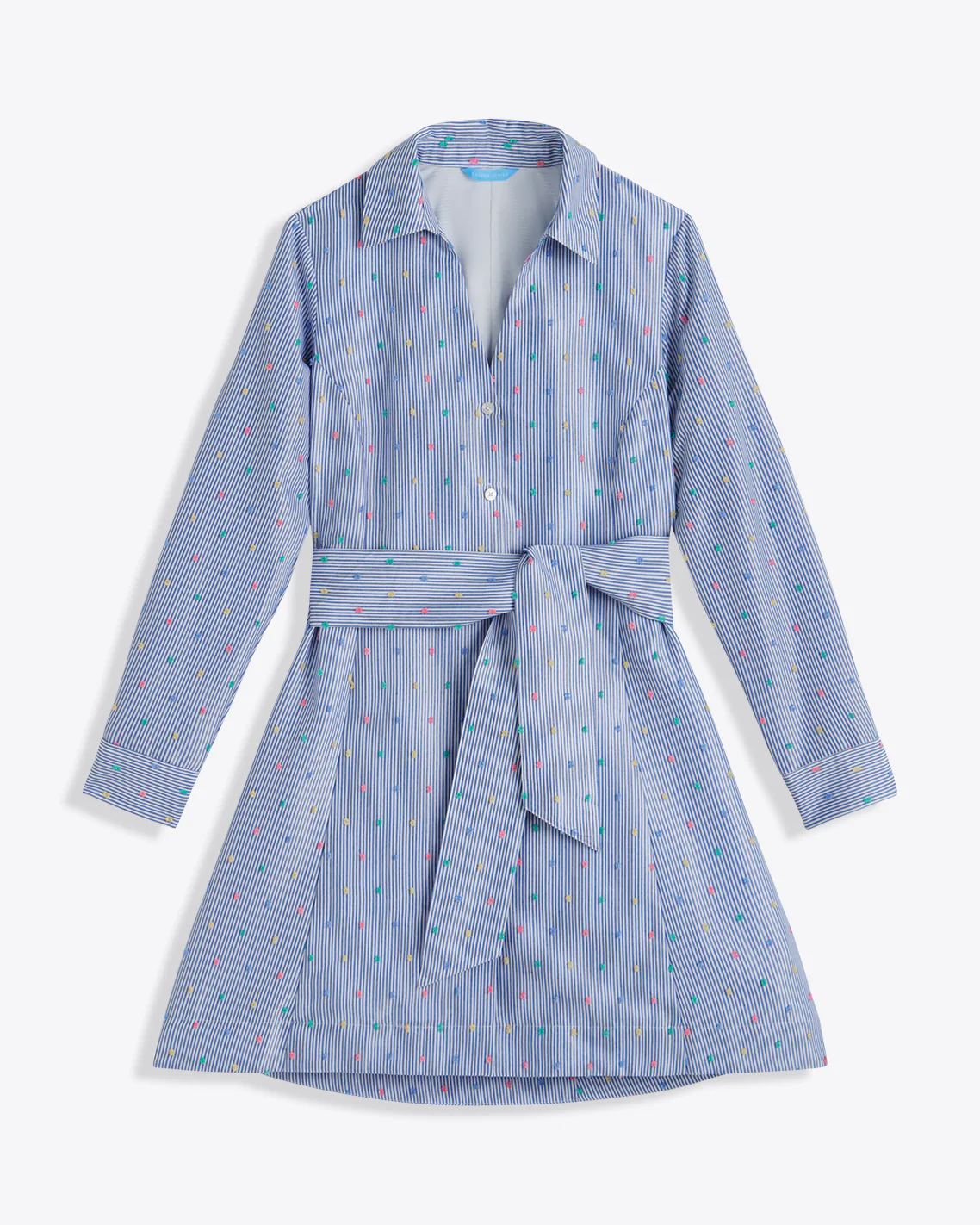 Blue mood. Cut from a textured clipped fabric in a cool striped pattern and finished with a self-belt and a high-low hemline, our Layla Shirtdress in Blue Stripe is perfect for everything from a work meeting to a weekend party. Pair it with flats and studs for the former, then switch to high heels and big hoop earrings for the latter. Either way, you’ll stand out!