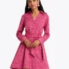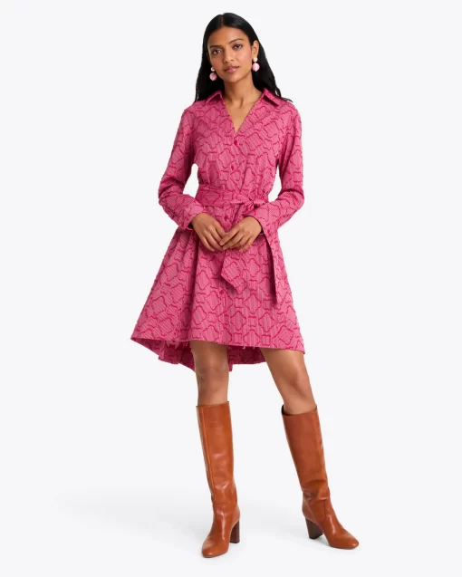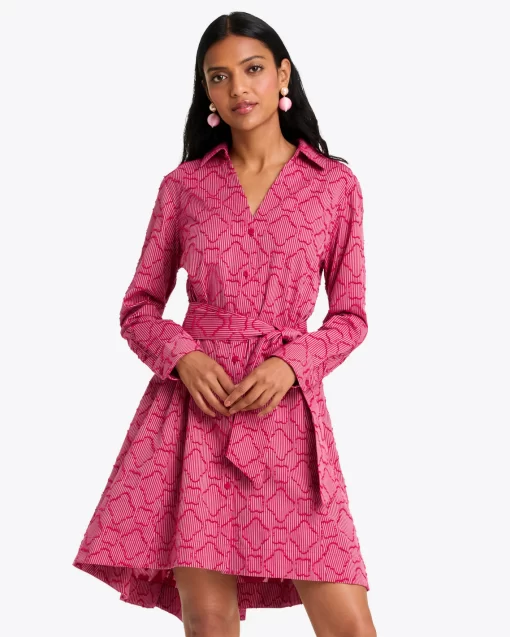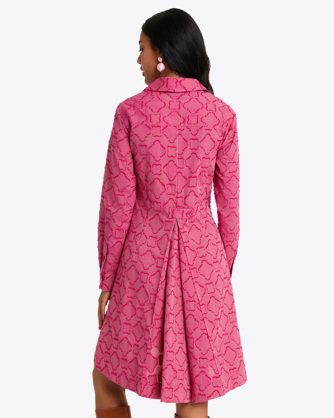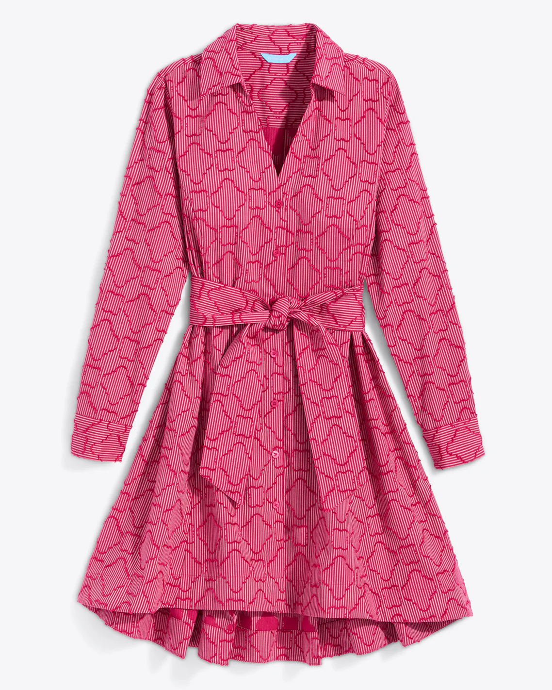 Think pink. Cut from a textured clip jacquard in a bold raspberry hue and finished with a self-belt and a high-low hemline, our Layla Shirtdress is perfect for everything from a work meeting to a weekend party. Pair it with flats and studs for the former, then switch to high heels and big hoop earrings for the latter. Either way, you’ll stand out!