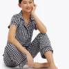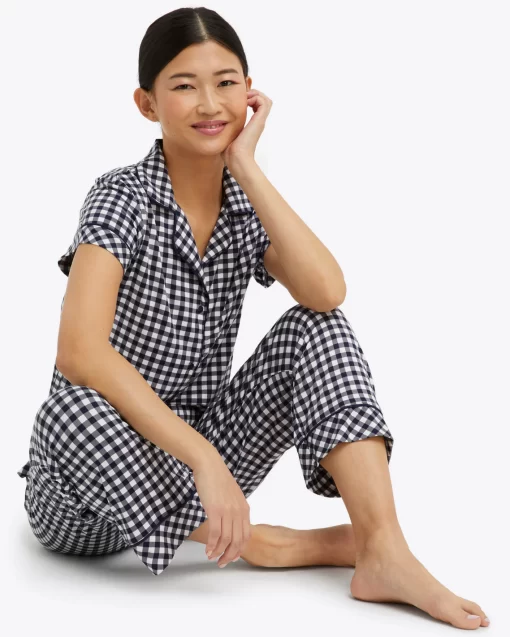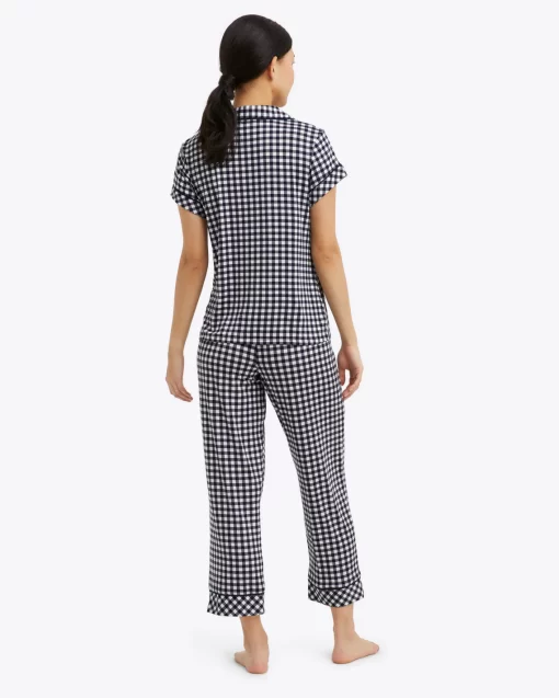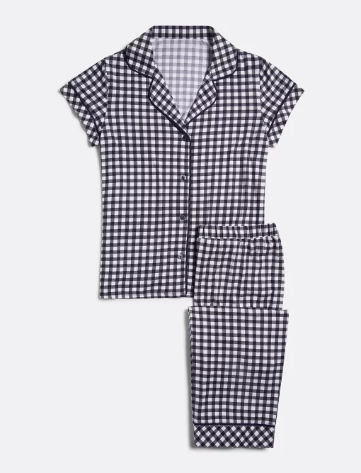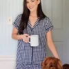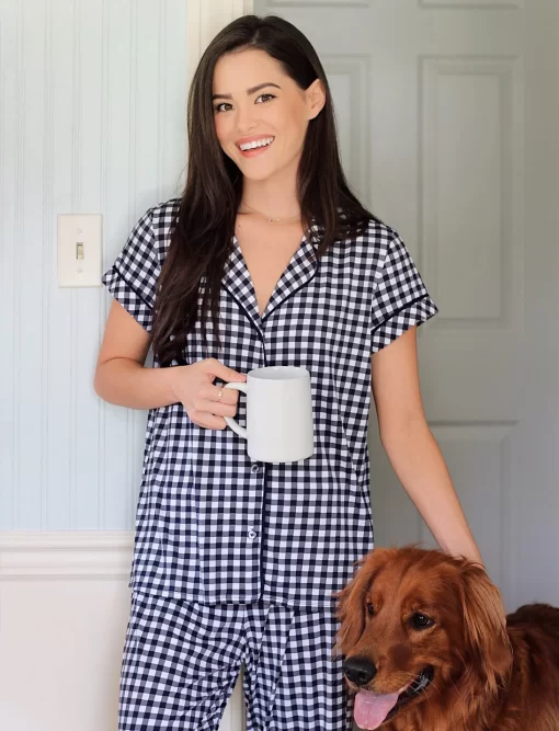 Pajamas must be three things: soft, comfortable, and full of personality. This set does it all — complete with our signature gingham print, functional button front top, contrast piping, and elastic waist bottoms. Sweet dreams!
