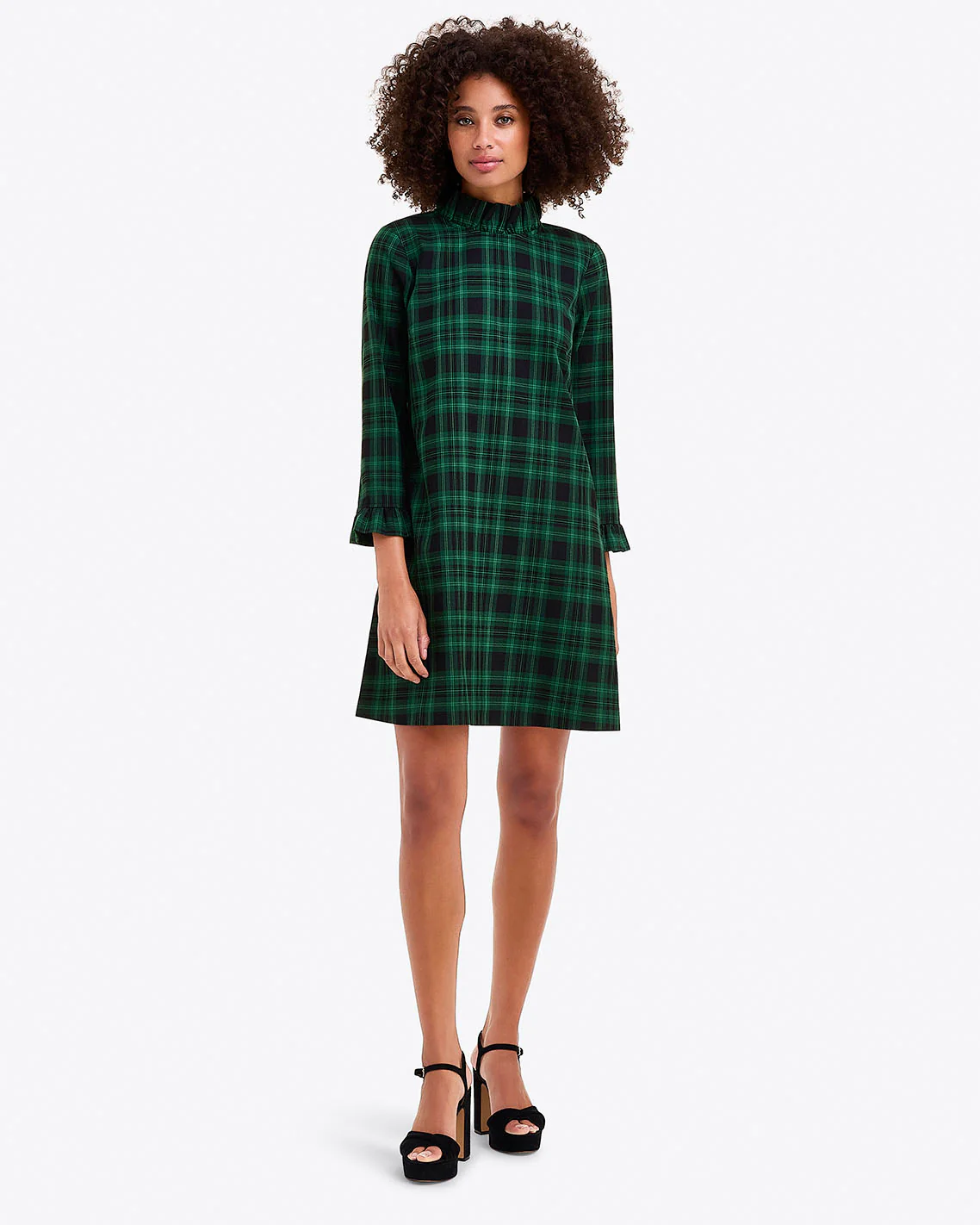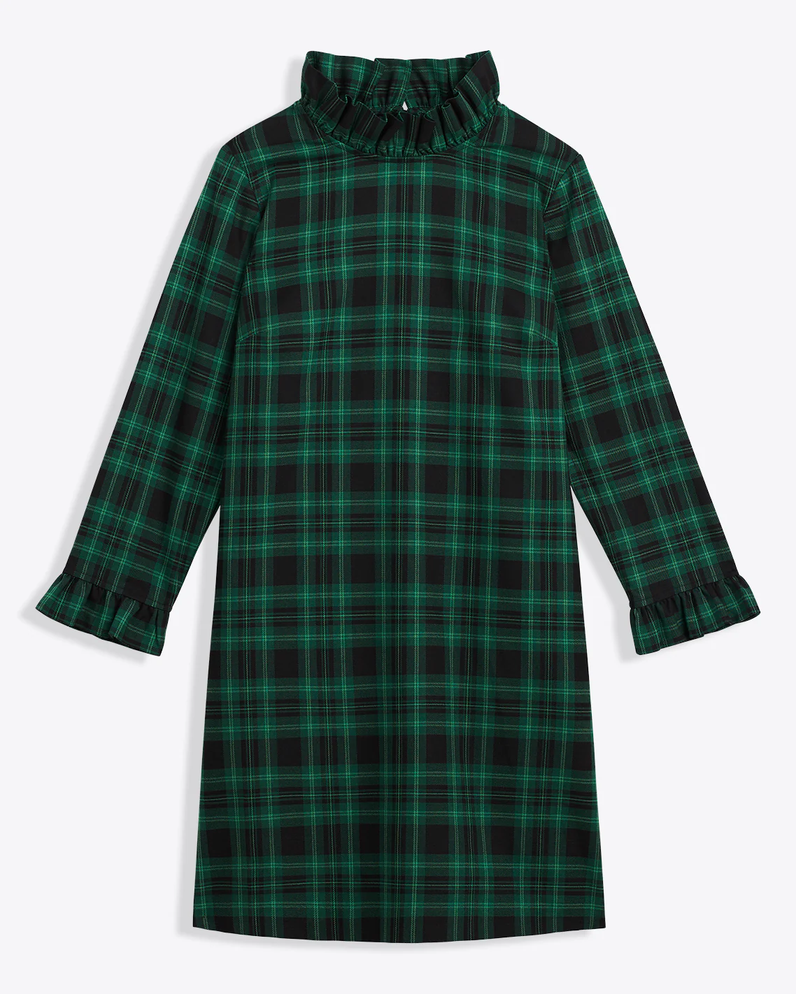 Give ’em short shift. Our Lindsay Dress in Blackwatch Plaid is a classic shift silhouette finished with a ruffled mock neck and cuffs. Wear it with heels and a pair of dangly earrings to holiday parties, dinners out or whatever else you have planned.