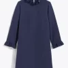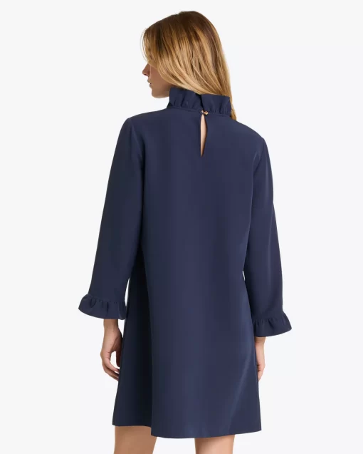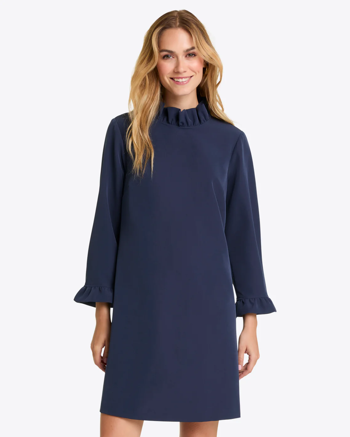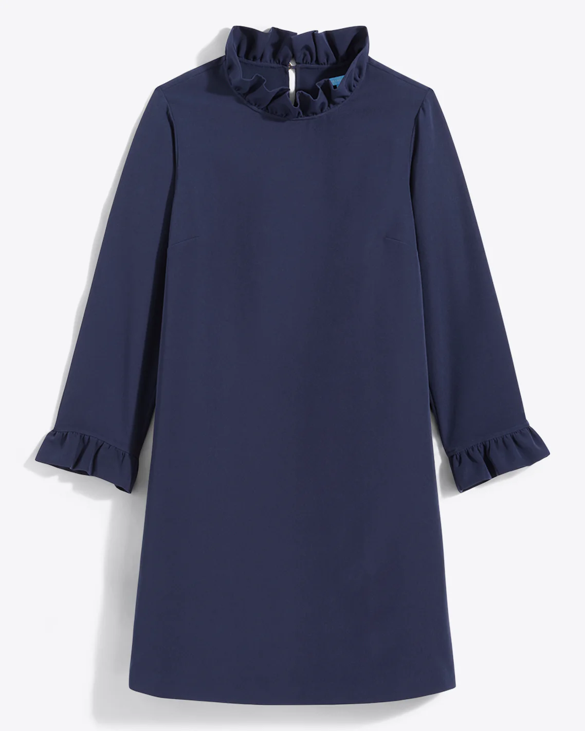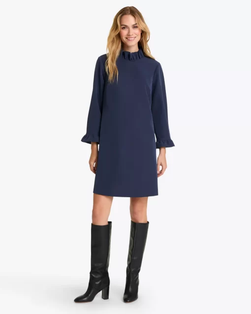 Give ’em short shift. Our Lindsay Shift Mini Dress is cut from a heavy crepe with the perfect amount of stretch and finished with a smocked mock turtleneck and cuffs. Wear it with clogs and a pair of dangly earrings to work, dinners out or whatever else you have planned.