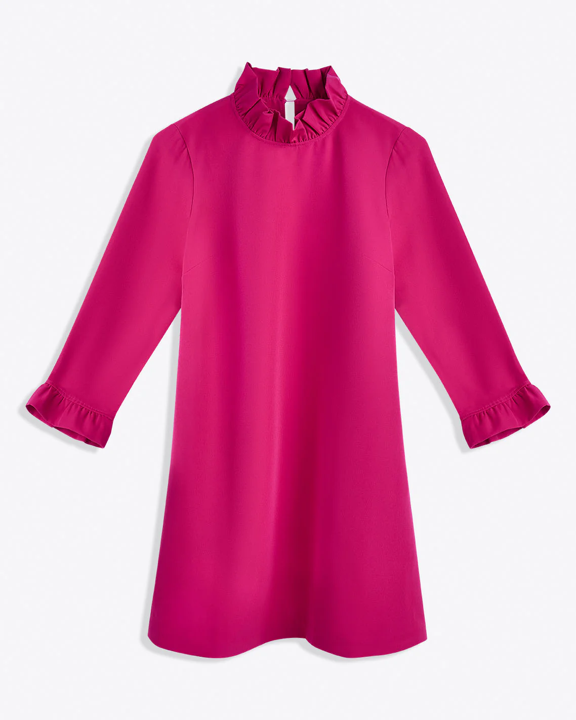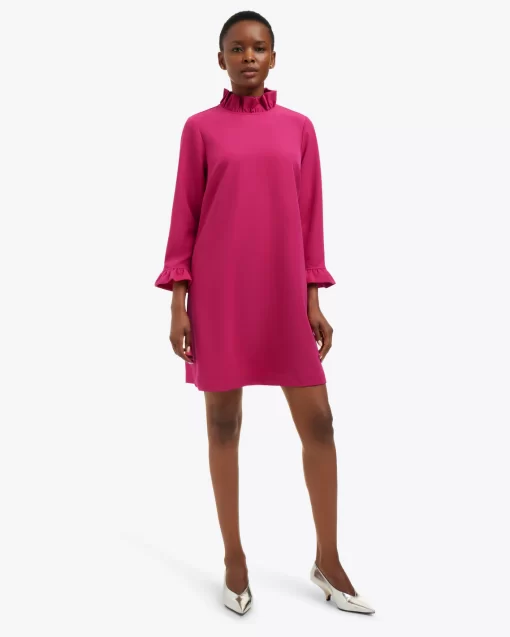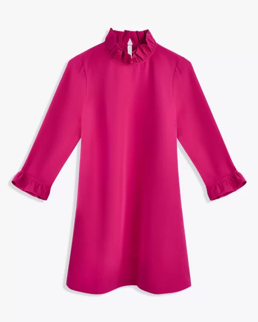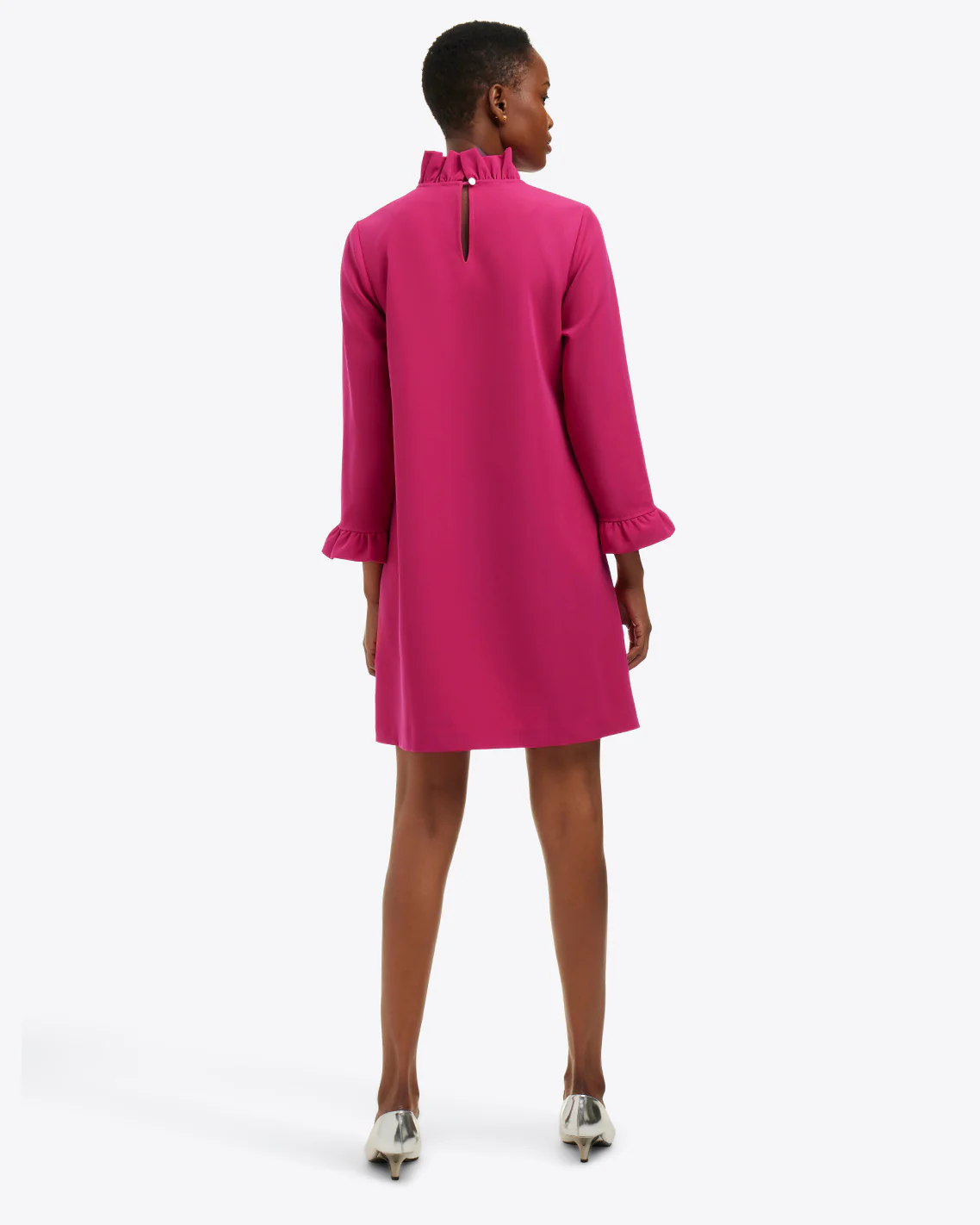 Give ’em short shift. Our Lindsay Shift Mini Dress is cut from a heavy crepe with the perfect amount of stretch and finished with a ruffled mock turtleneck and cuffs. Wear it with clogs and a pair of dangly earrings to work, dinners out or whatever else you have planned.