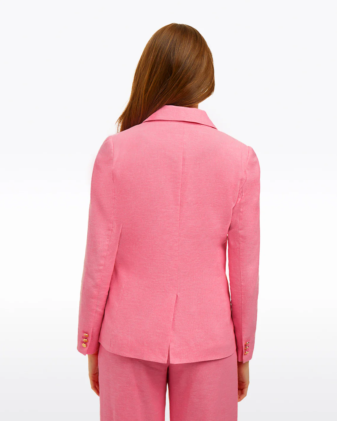 Think pink. Cut from a comfortable cotton-linen blend in a chic, flattering silhouette our Linen Blazer are a great spring staple. Wear them with jeans, skirts or even our matching Linen Wide Leg Pants for a polished but pretty look.