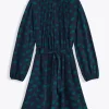 Draper James Women’s Long Sleeve Belted Dress In Ginko Leaf | Nassau Navy