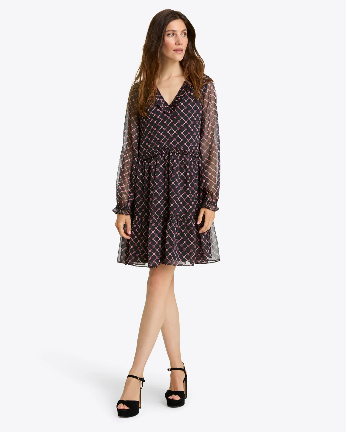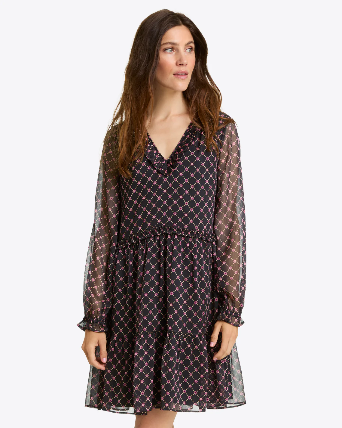 Easy does it. Our Lorrie Long-Sleeve Dress is cut from a pretty daisy-printed fabric and finished with a V-shaped neckline, puffed sleeves and smocked cuffs, for a look that’s both polished and laid-back. Wear it with heels, clogs or boots, to work, date nights or drinks with friends.