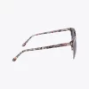 - Smoke tortoise frame front to a satin silver metal rim with smoke tortoise and floral printed temples
