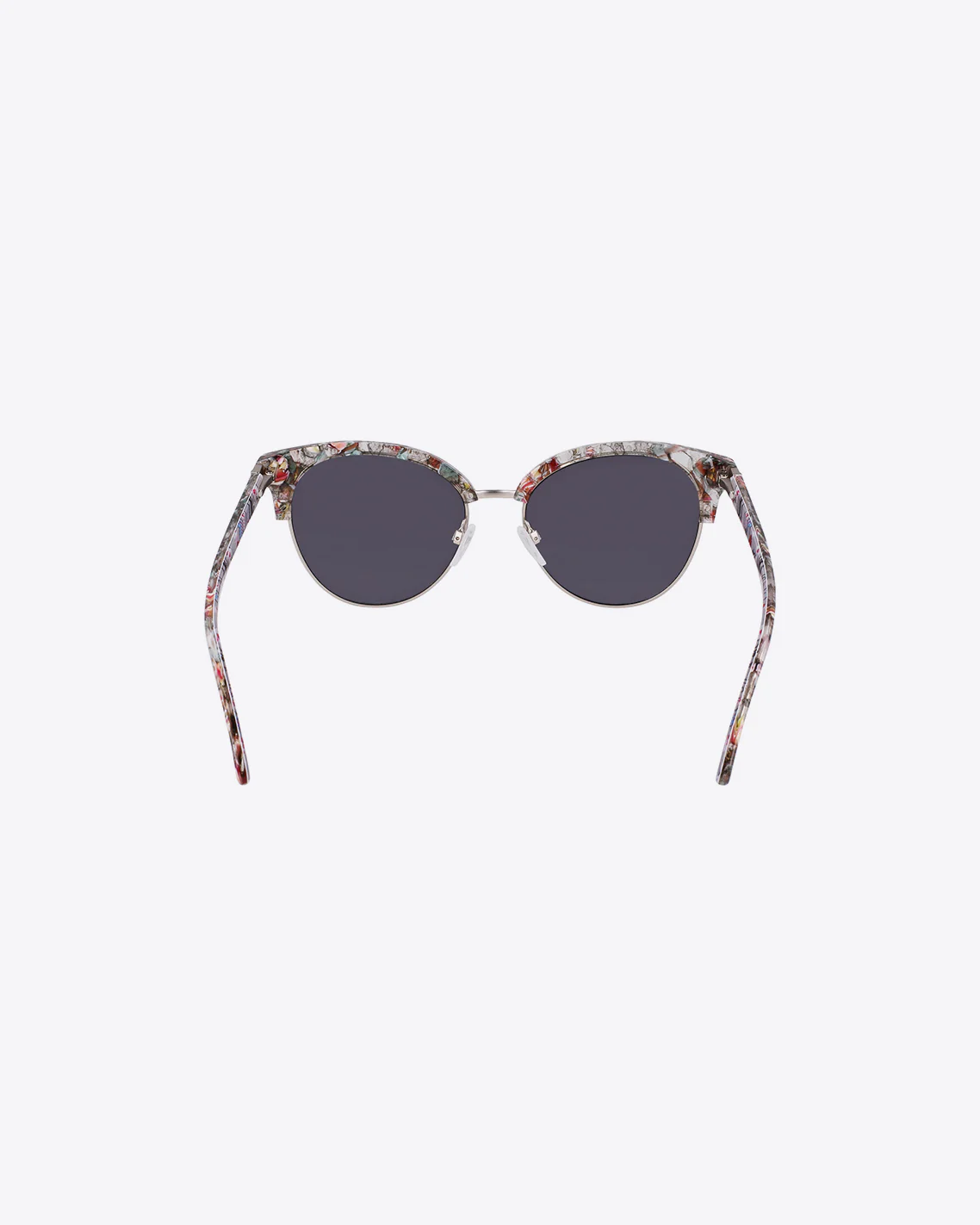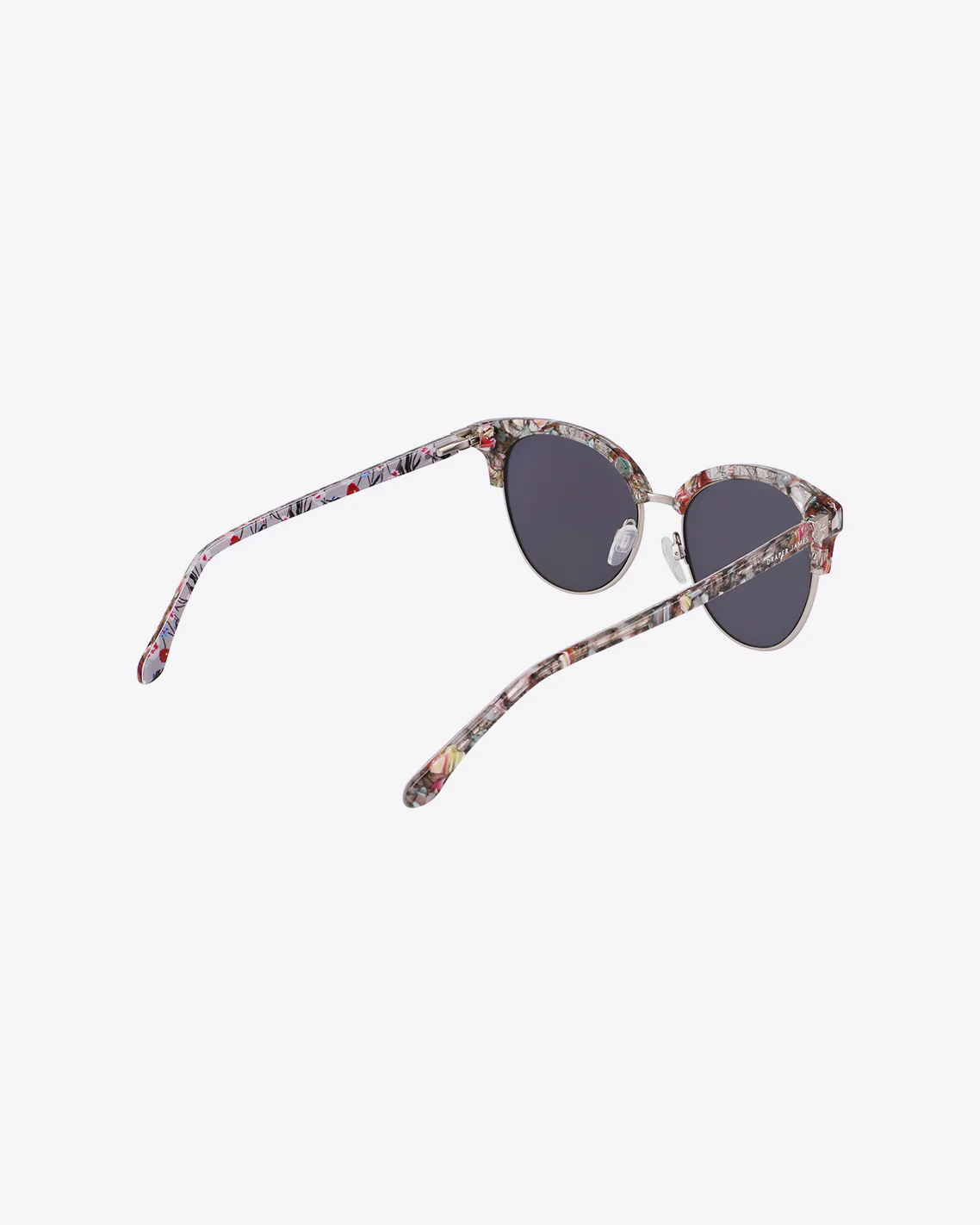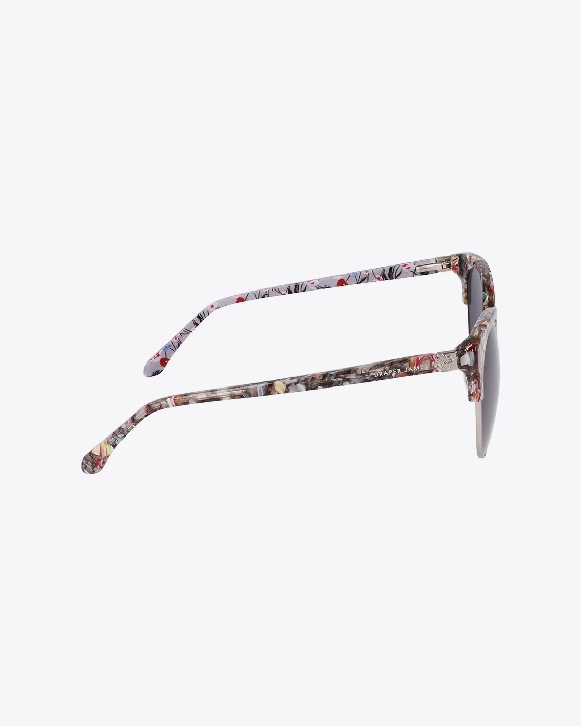 Made in the shades. Our Lucy Sunglasses feature smoke tortoise frames printed with one of our signature florals on the inner temples.