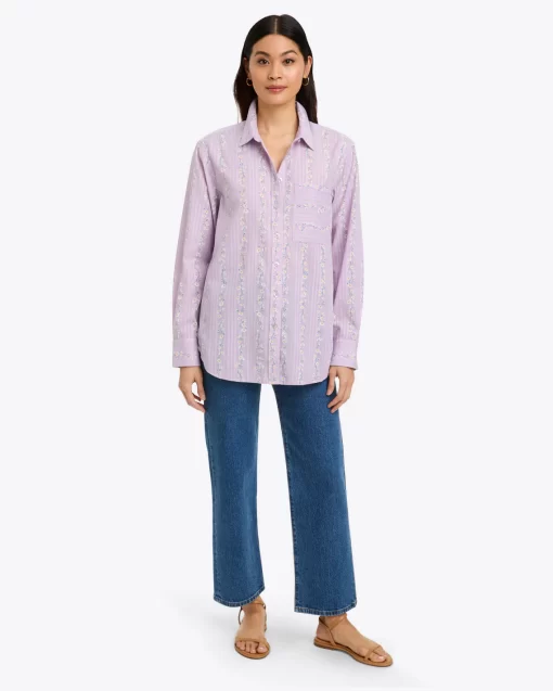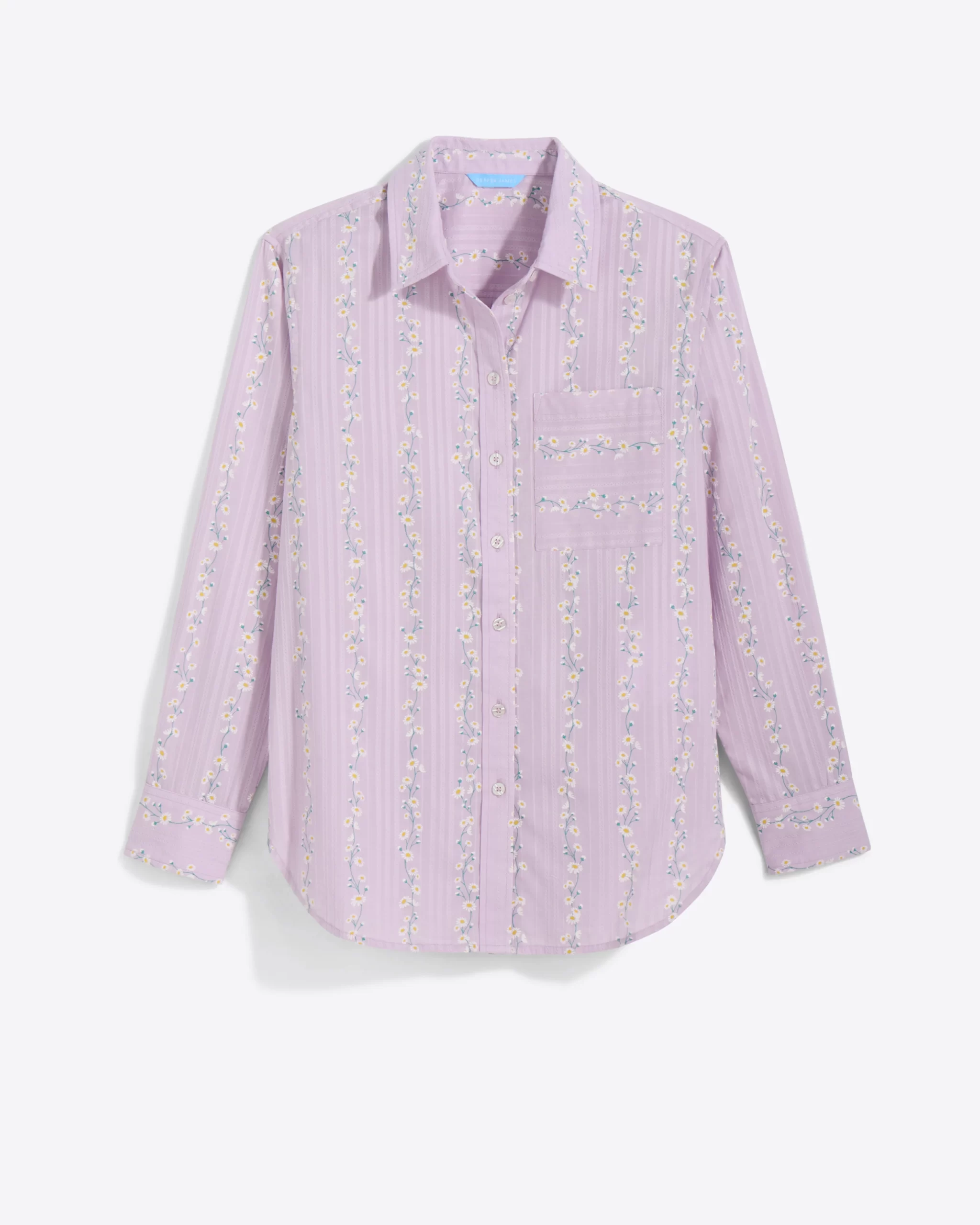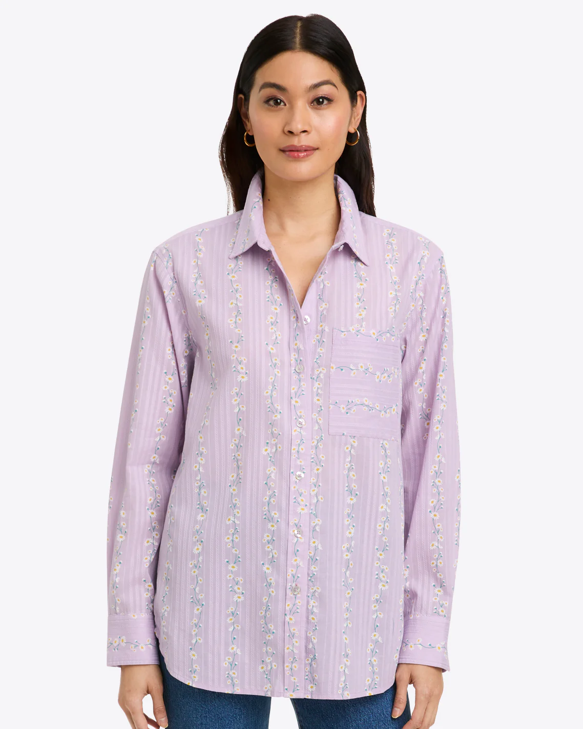 Purple reign. Our menswear-inspired Lynn Long Sleeve Top is made from embroidered 100% cotton dobby, for a look that’s polished — especially with a skirt or a pair of tailored pants — without being all-business. Want to make it a little more casual? Try it half-tucked (and possibly only half-buttoned) over your favorite jeans.