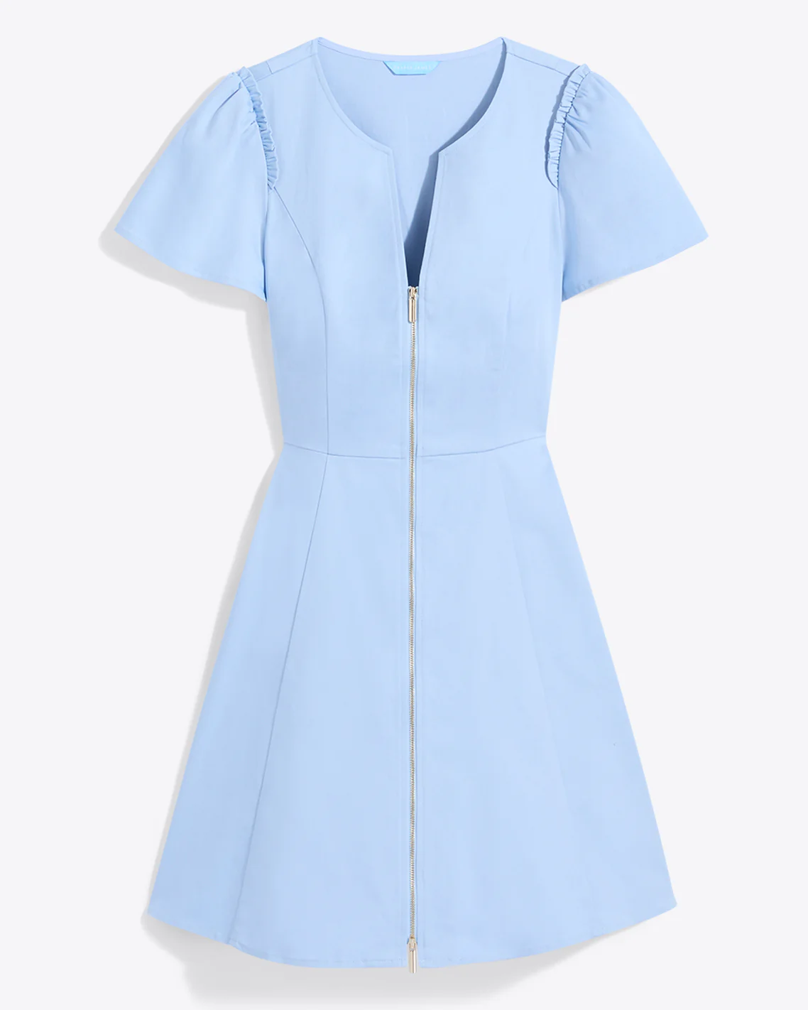 Come full circle. Our Mae Love Circle Dress is a new take on our iconic Love Circle silhouette, made famous by Reese herself. This version is constructed from a structured cotton with the perfect amount of stretch and features a cool two-way zipper in the front. Try it with high heels on your next desk-to-dinner day!