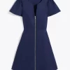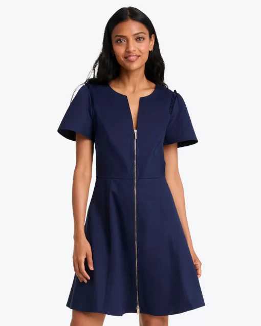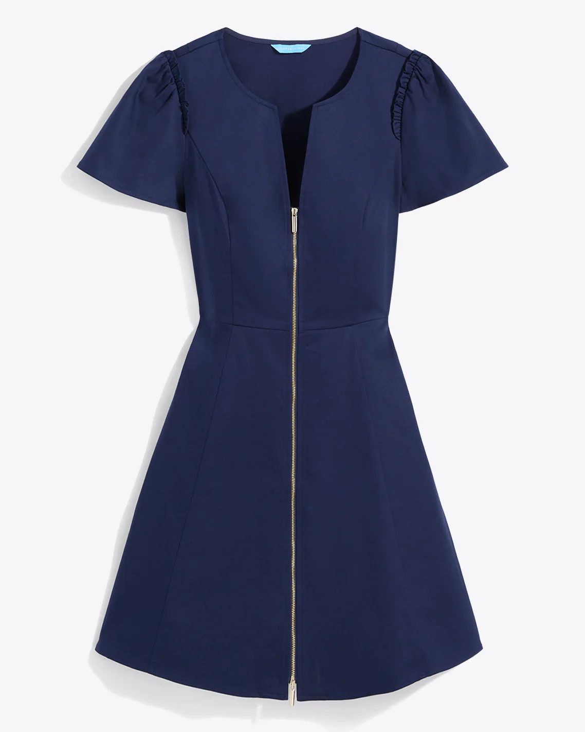 Come full circle. Our Mae Love Circle Dress is a new take on our iconic Love Circle silhouette, made famous by Reese herself. This version is constructed from a structured cotton with the perfect amount of stretch and features a cool two-way zipper in the front. Try it with high heels on your next desk-to-dinner day!