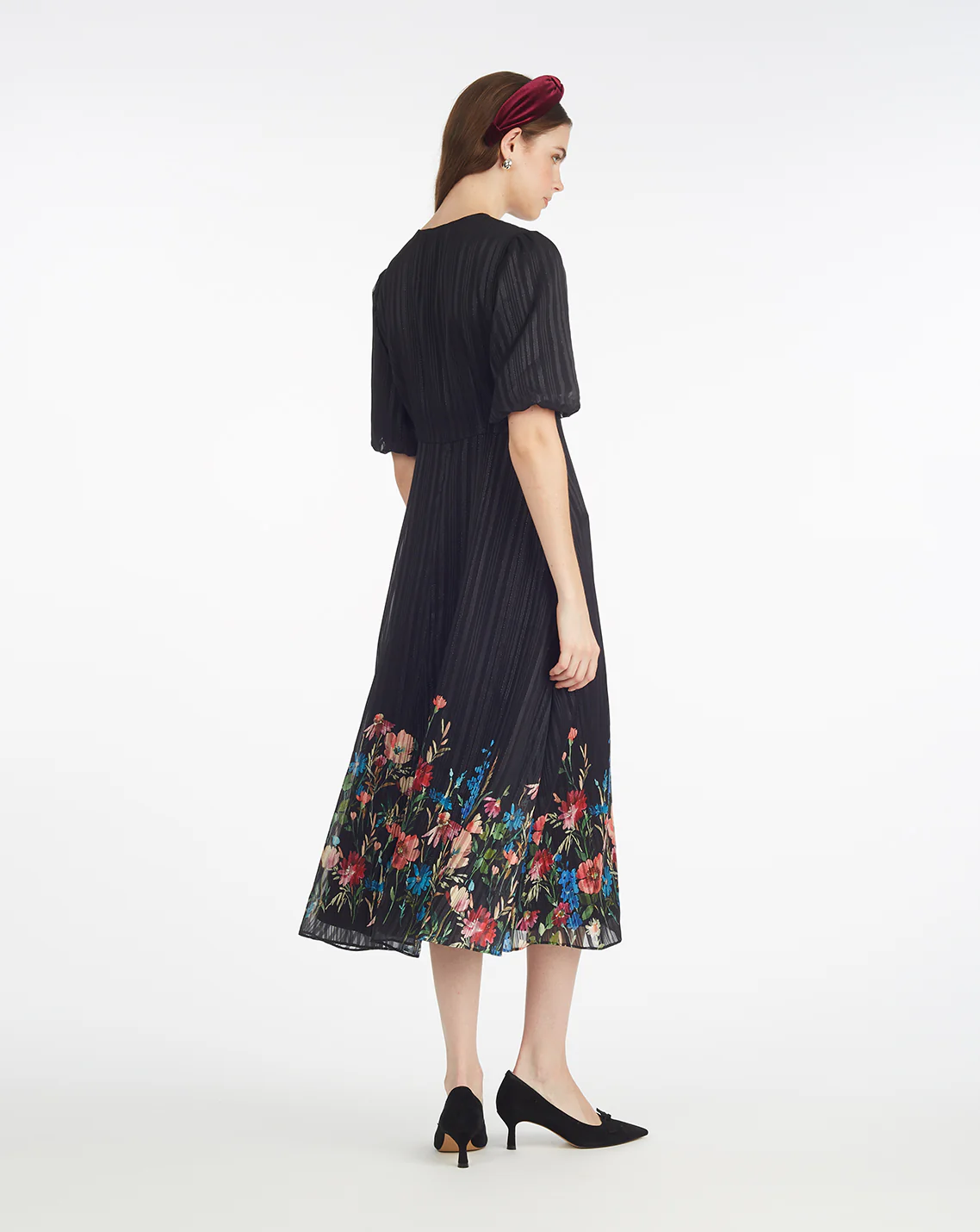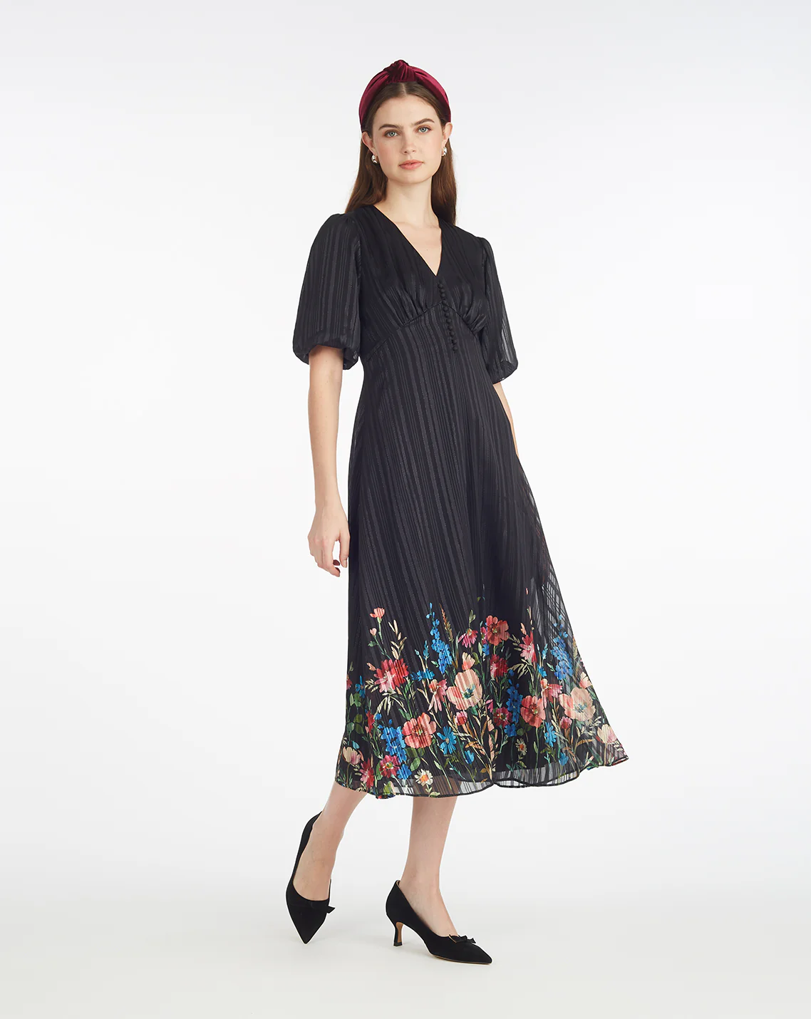Draper James Women’s Maisy Midi Dress In Moonlit Blooms | Black Multi