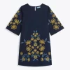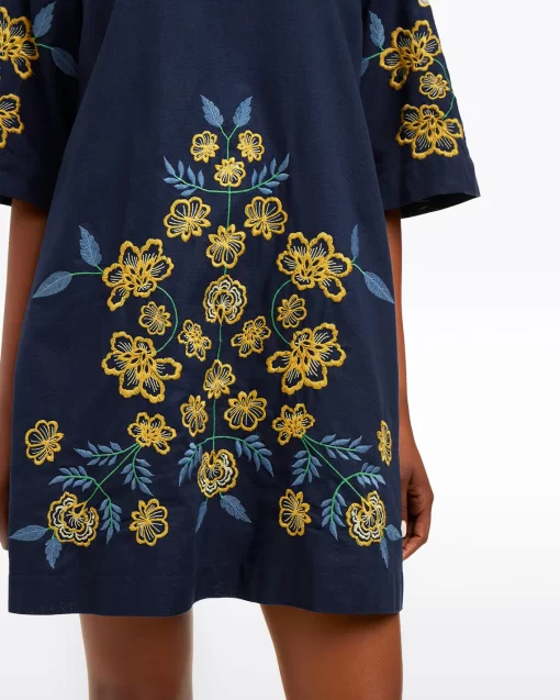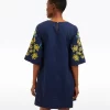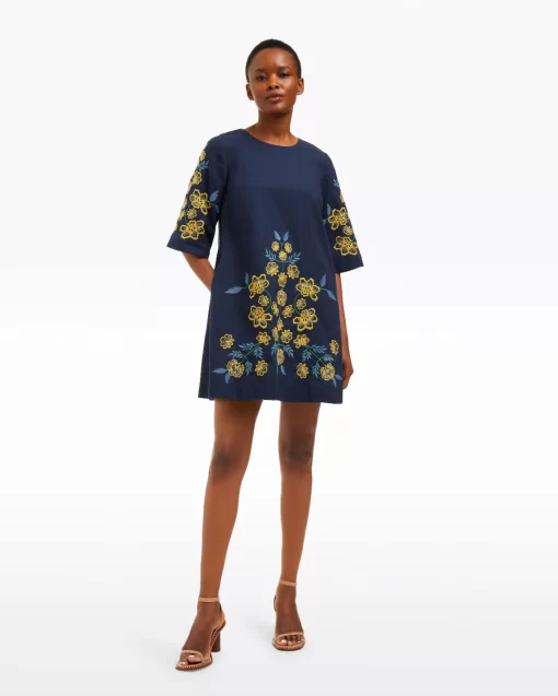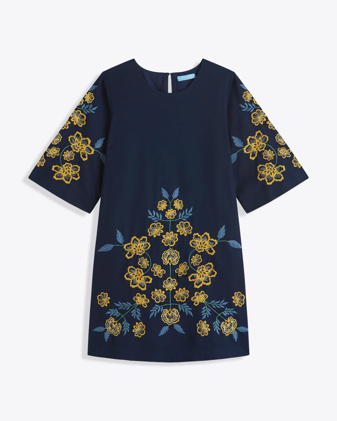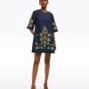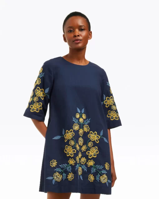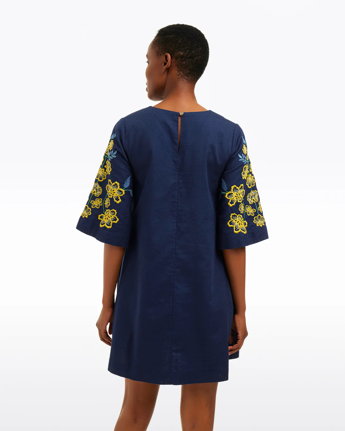 In season. Our Mallory Embroidered Bell Sleeve Minidress is cut from 100% cotton and decorated with a symmetrical floral design for a cool, artistic vibe. Wear it with heels or flats to brunches, dinners, work or whatever else you’ve got going on.