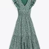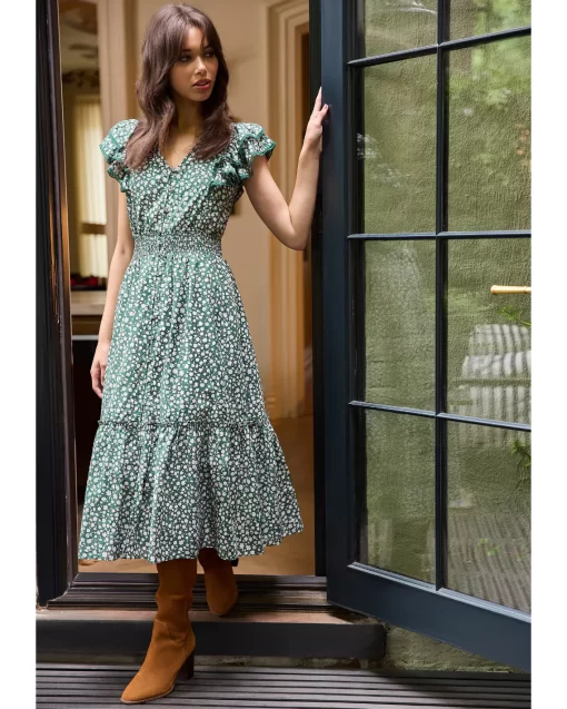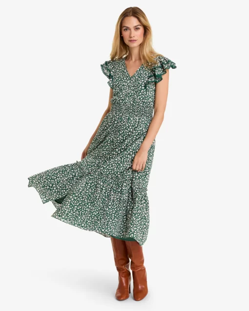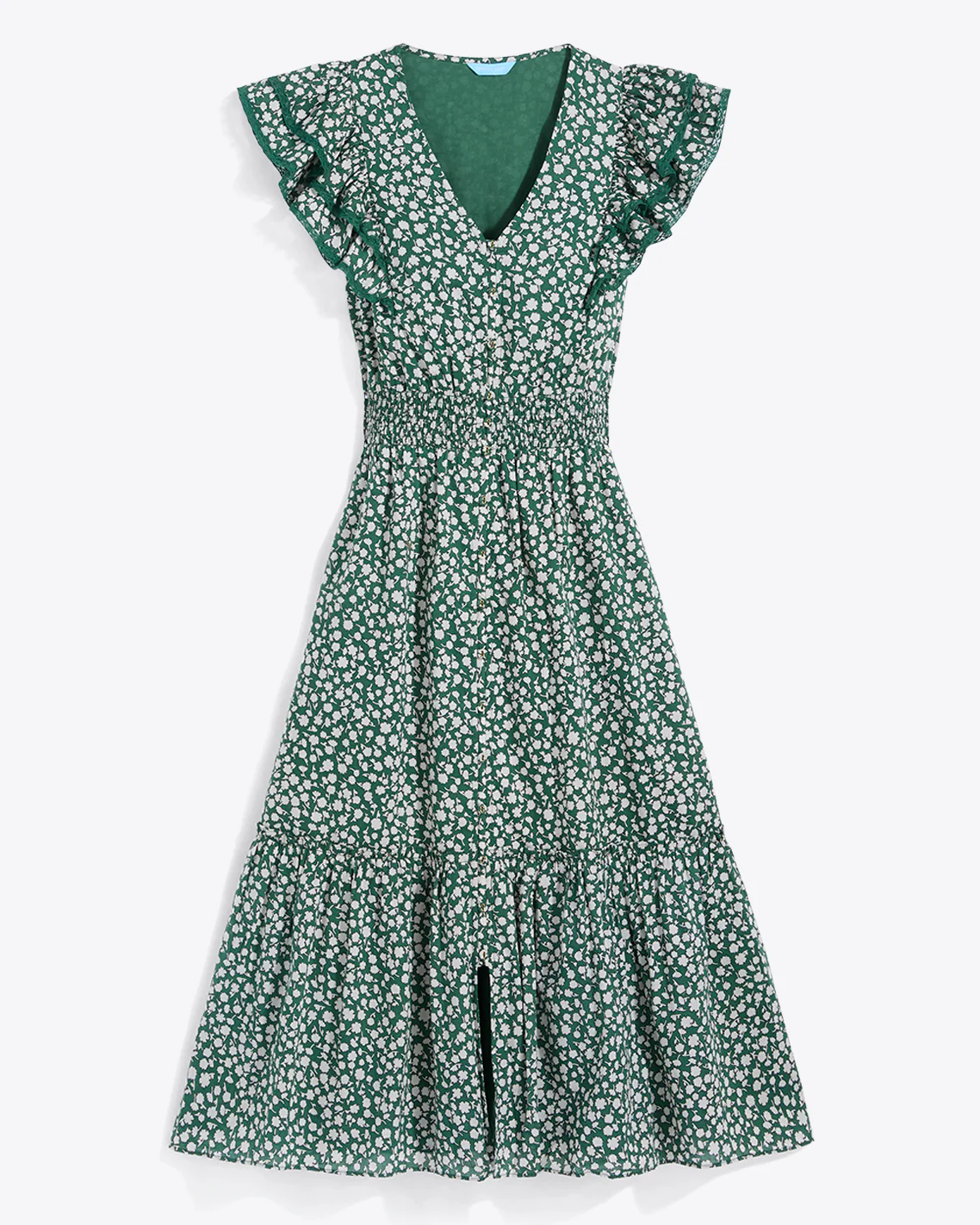 Ruffles up. Cut from gauzy 100% cotton in a ditsy floral print, our Meg Midi Dress is finished with flattering details like a v-shaped neckline and smocked waist. It’s a great party dress — just add heels! — but will also work for daytime with flats and a jean jacket.