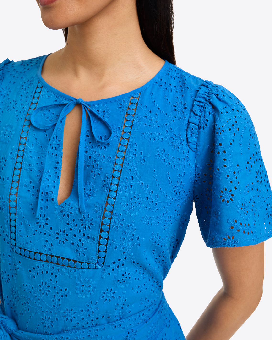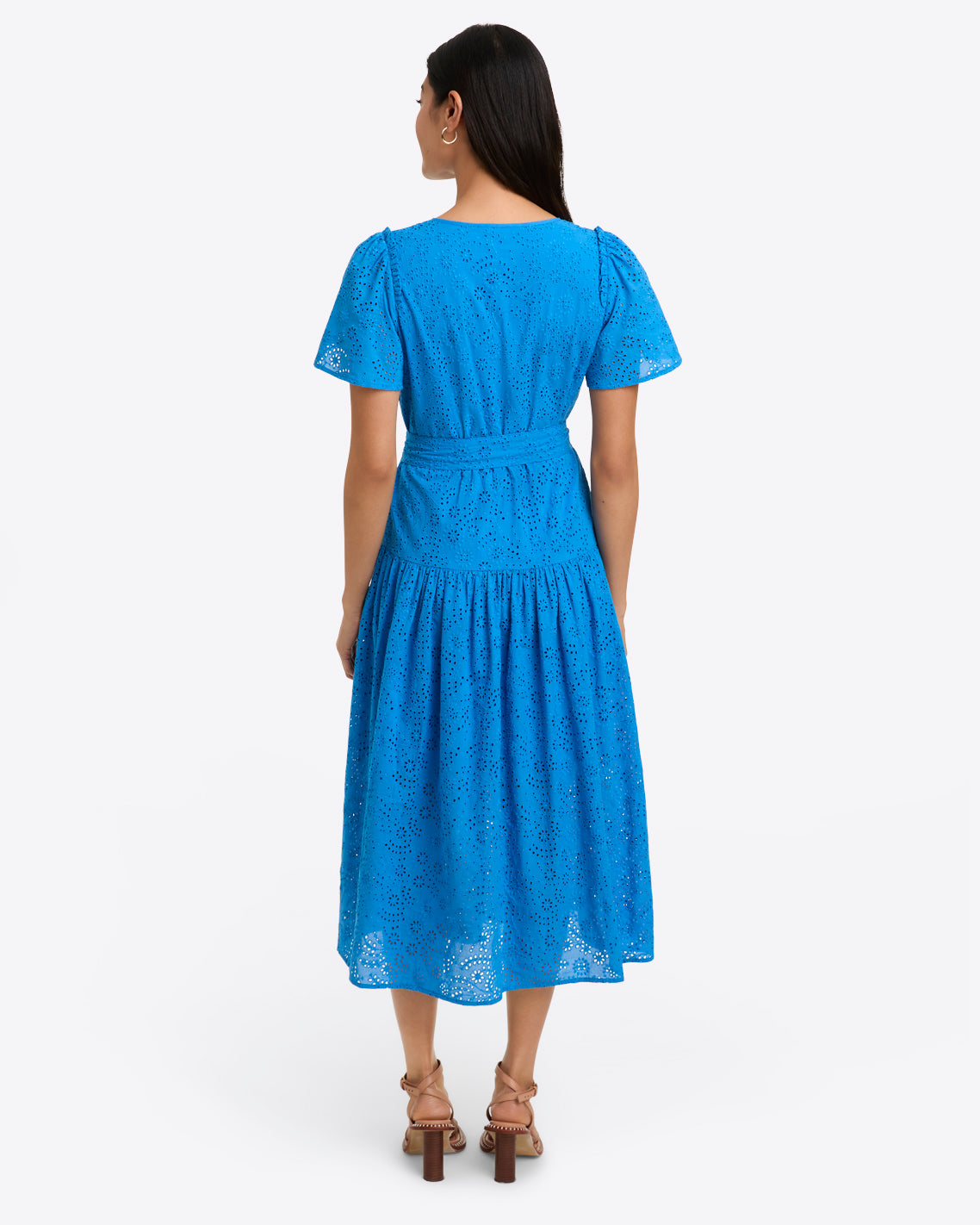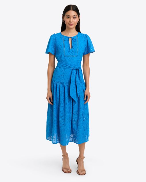 Twirl power. Cut from 100% cotton eyelet and finished with a self-tying belt, a keyhole-front neckline and a full skirt, our Mia Midi Dress is perfect for summer. Wear it to brunch with your favorite sneakers or flats, then switch to a pair of high-heeled sandals for dinner, a party or a dinner party!