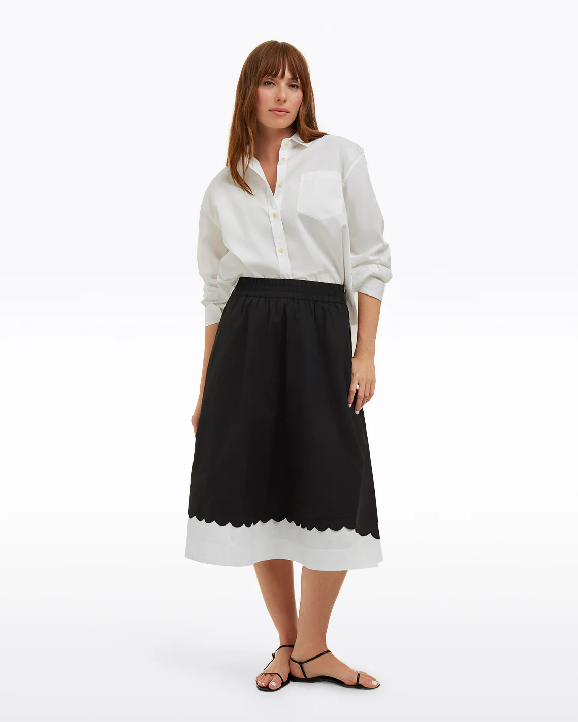 What’s black and white and chic all over? You, when you wear our Midi Skirt. Cut from cotton with the perfect amount of stretch, this bicolor piece is perfect for work and the weekend. Wear it with your favorite tank, T-shirt or button-up and finish with a pair of kitten heels!