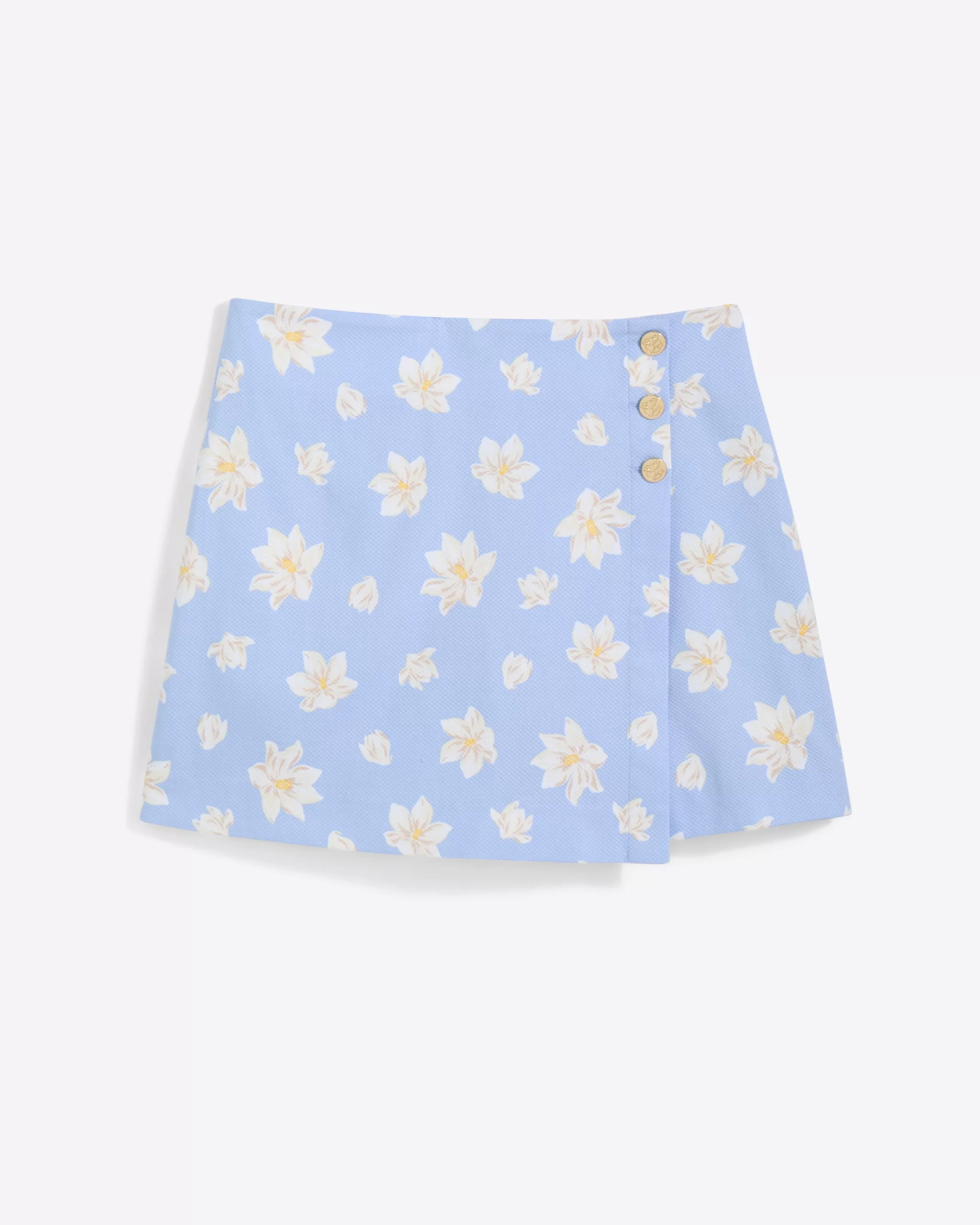 Pique some interest. Our Mini Wrap Skort is made from magnolia-printed cotton pique with the perfect amount of stretch and finished with a wrap front and Draper James logo buttons, for a look that’s equal parts sporty and cute.