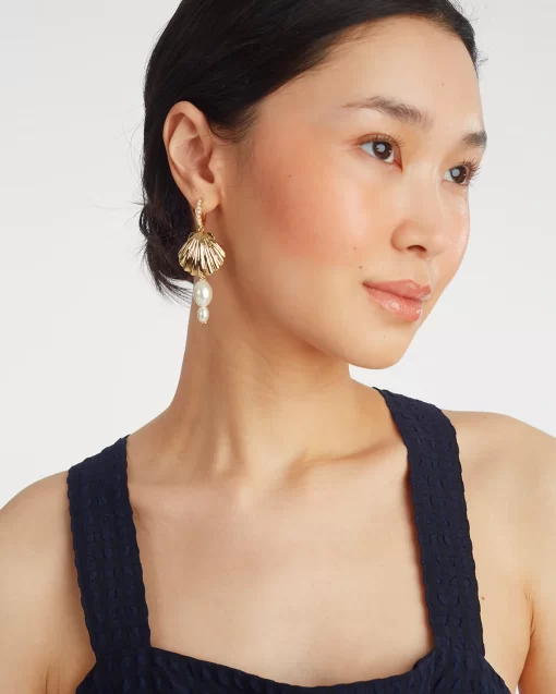 Beach, please. Our Pearl Shell Drop Earrings are decorated with dangling glass pearls and scallop shells made from 10K gold-plated zinc. Wear them to a barbecue, to drinks, to dinner…wherever you’re headed this summer.