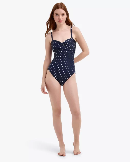 On the dot. Our Polka Dot Bandeau One Piece combines comfort with style, making it the perfect swimsuit for a beach vacation, a pool party, or any other waterfront event!