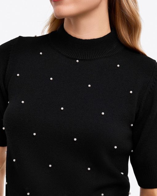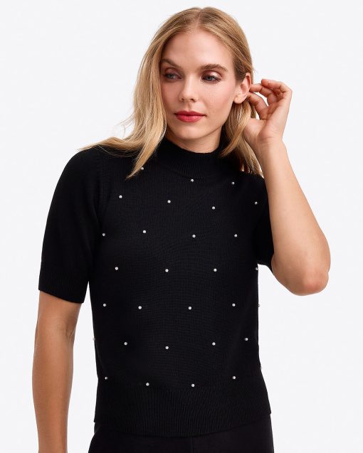 Pearls in clutch. Knit from a soft wool-cashmere blend and dotted with tiny pearls, our Puff Sleeve Pearl Sweater is an easy way to make your ensemble feel festive. Wear it with jeans, a skirt or pants to your next holiday party.