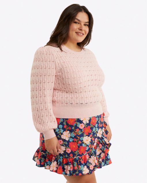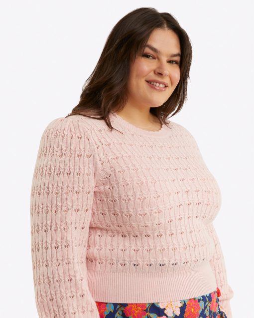 Draper James Women’s Puff Sleeve Sweater In Pointelle | Orchid Pink
