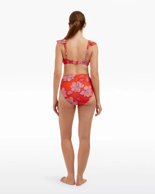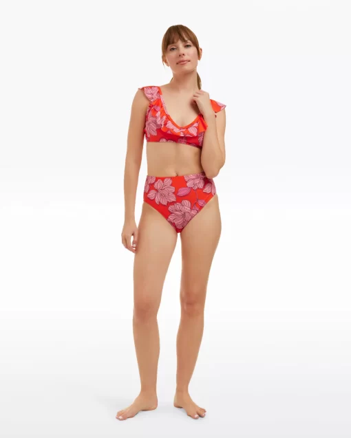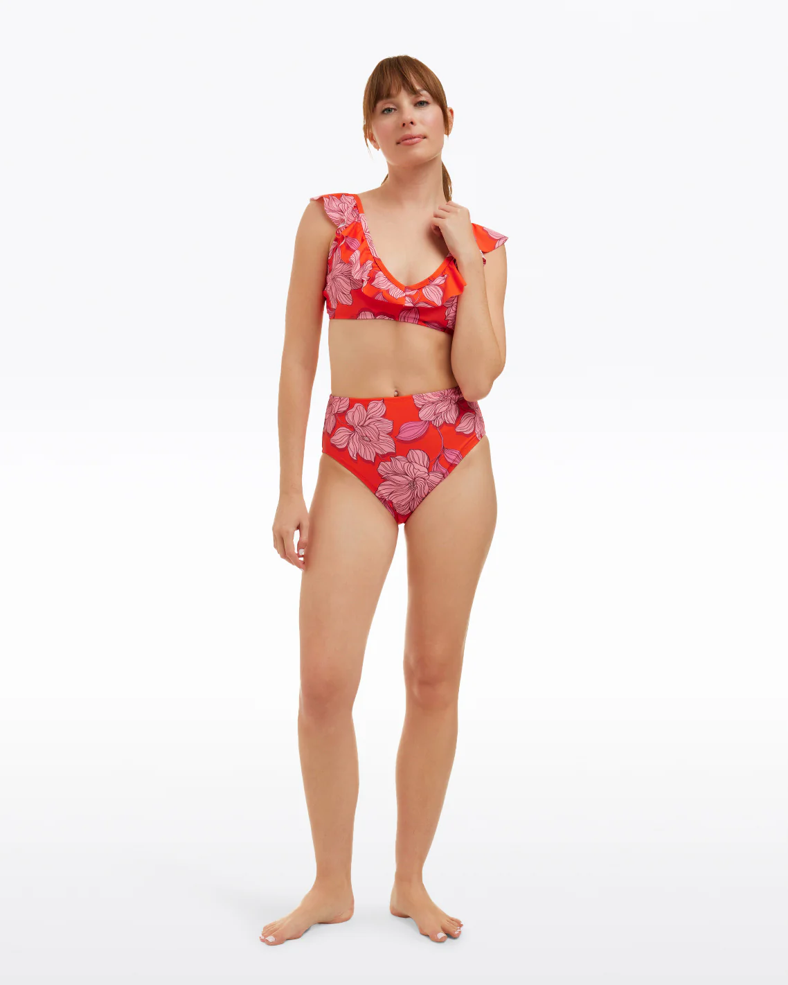 Top tier. Our Ruffle Bralette is cut from a bright flower-printed fabric and decorated with a flattering ruffle, for a look that’s just a bit more elevated than your typical bikini top. Wear it with our matching High Waist Bottom and a pair of oversized shades (maybe our Luma Sunglasses?) for a cute beach or pool look.