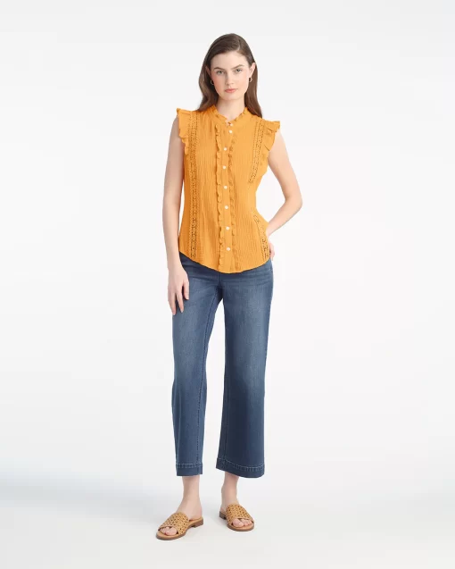 Lighten up. Our Ruffle Top in Crinkle Cotton is a summer must-have, a perfect match for everything from jean shorts to skirts.