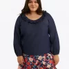 - Plus model is 5’9″ and wearing 1X