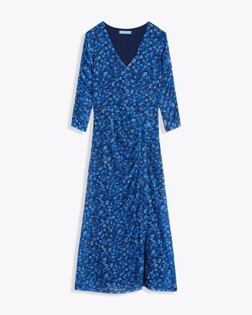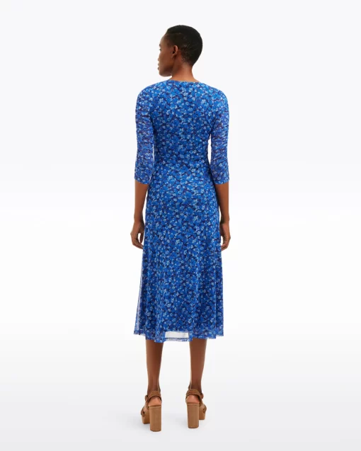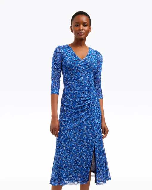 Spring flowers. Cut from a floral-printed stretch mesh and finished with long sleeves and a slit at the hemline, our Selena V-Neck Midi Dress in Blue Scattered Ditsy is a great dress for the coming season. Wear it with heels and a cardigan to parties, Easter brunches or whatever else you might have planned.
