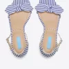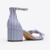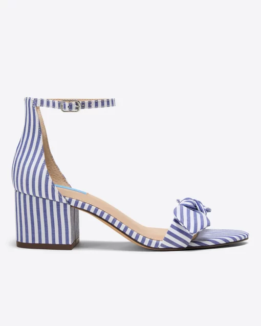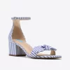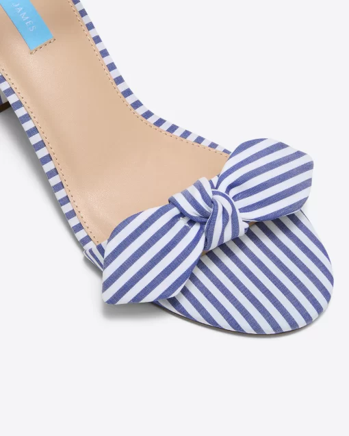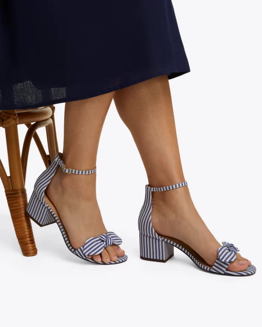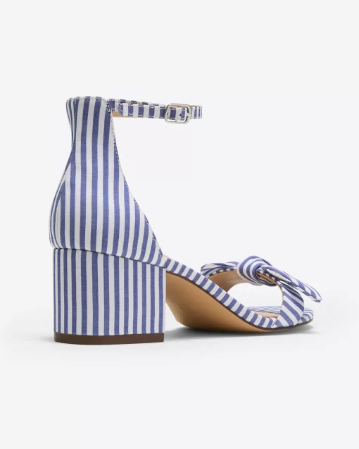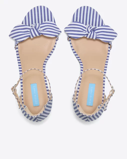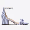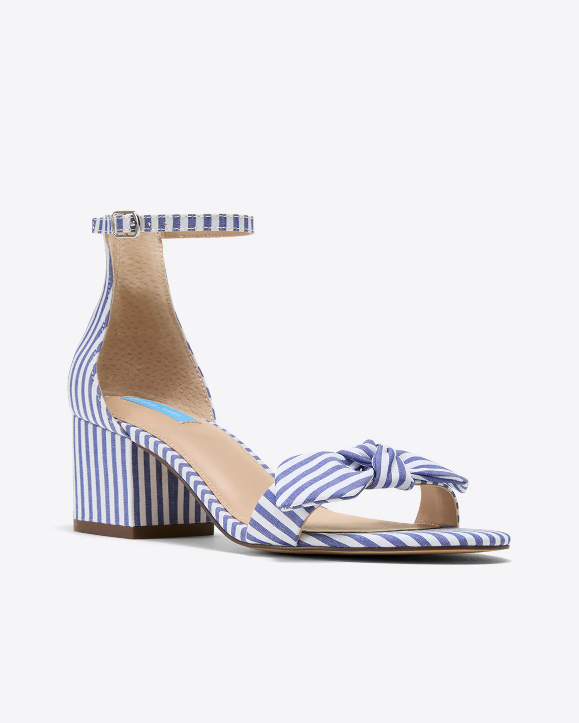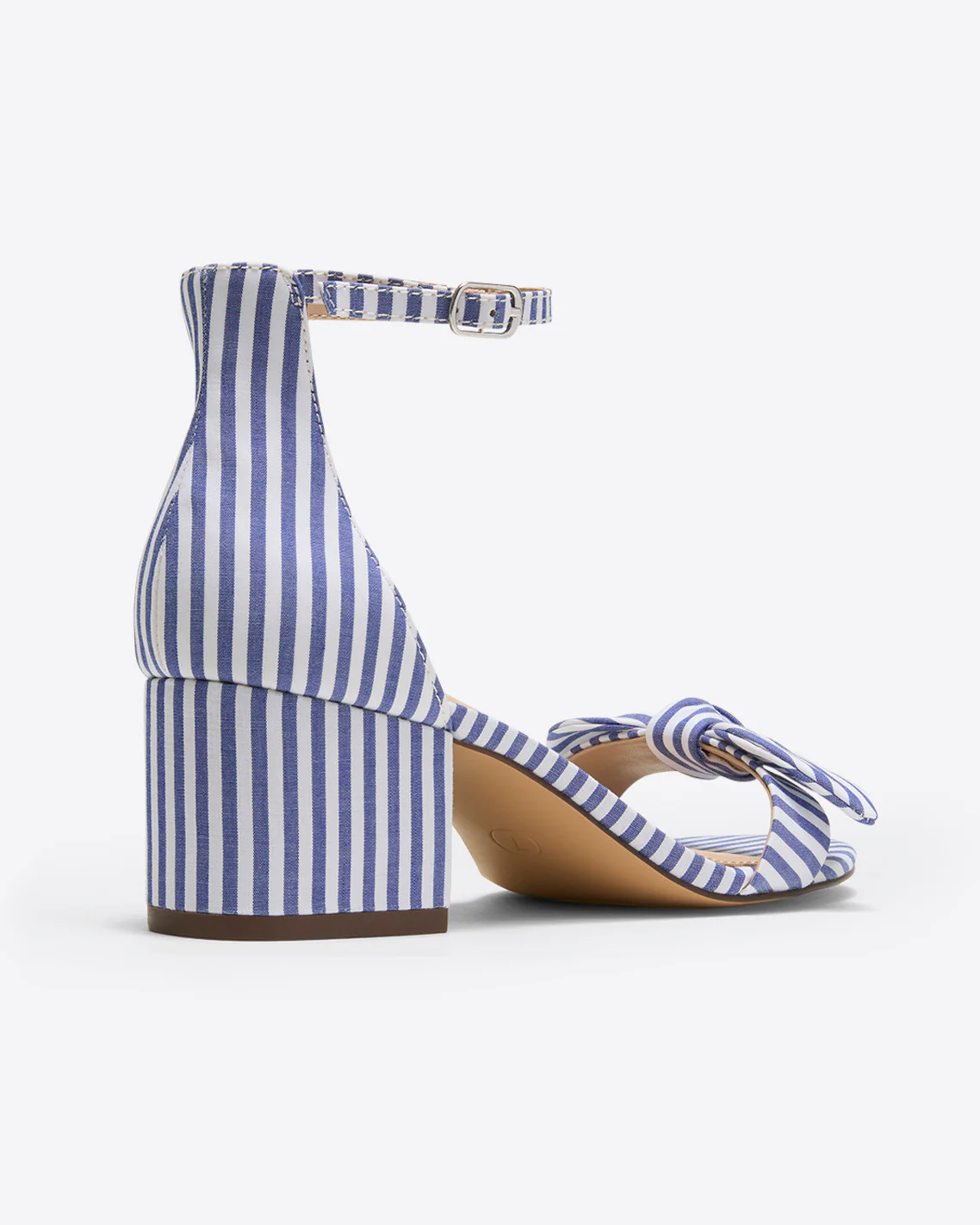 Strap in. Our Preston Sandal in Blue and White Stripe features a walkable 2.25-inch heel, with a knotted bow and an adjustable ankle strap. Wear them with skirts, sundresses, and even jeans, all spring and summer long.