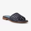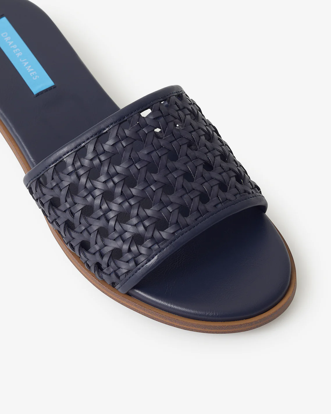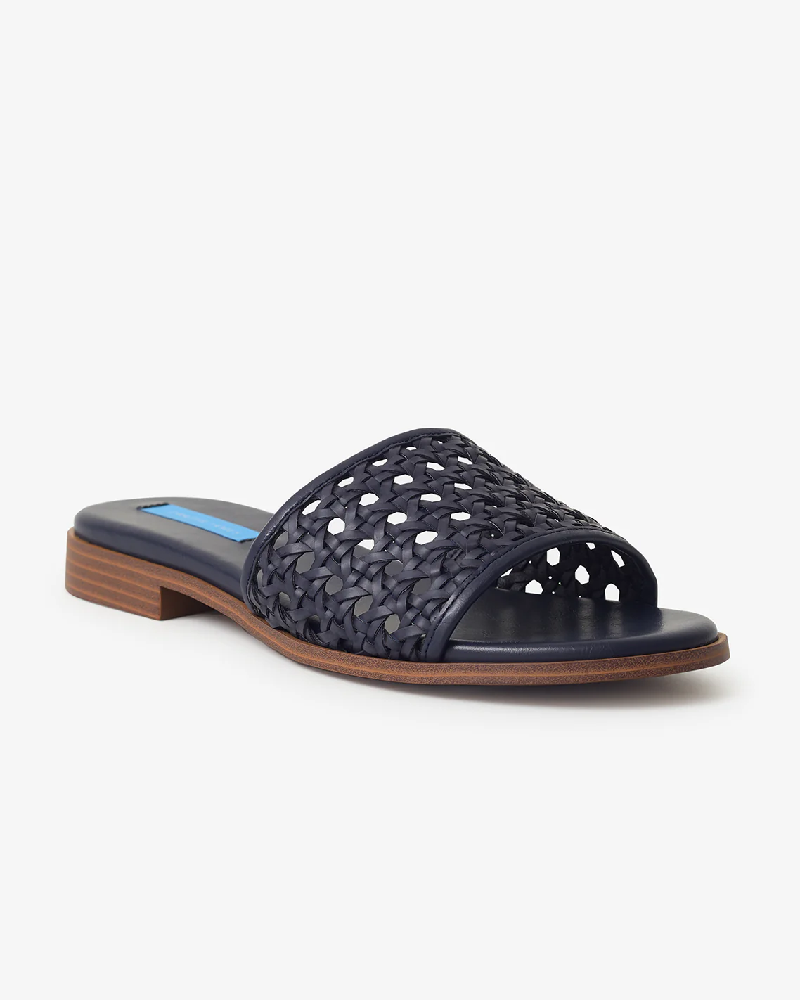 - East to wear slip-on sandal, with artisanal woven upper, square toe and comfort sock padding.
