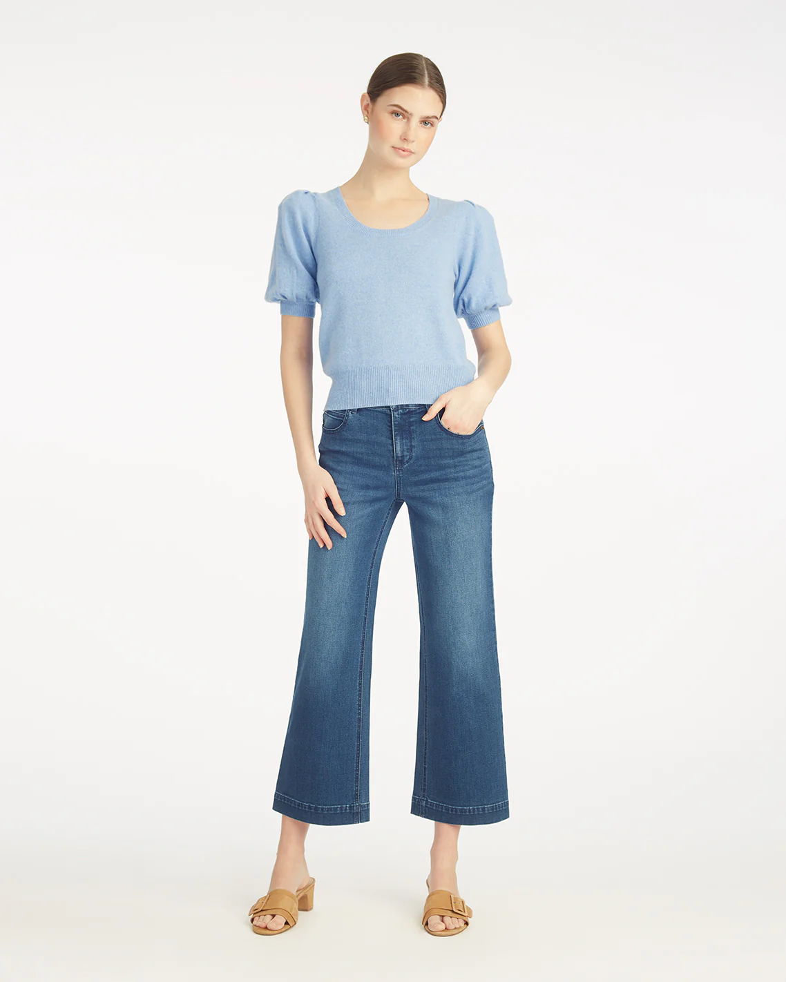 Sweater weather, for ever and ever. Our Short Sleeve Cashmere Sweater is knit from lightweight 100% cashmere in a sweet shape that you’ll still be reaching for even as the weather warms. Sweater weather, for ever and ever. Our Short Sleeve Cashmere Sweater is knit from lightweight 100% cashmere in a sweet shape that you’ll still be reaching for even as the weather warms. In soft blue, it’ll pair perfectly with floral skirts and add polish to your favorite jeans.